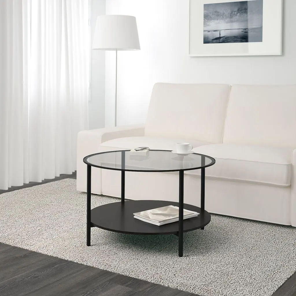 Журнальный стол, черно-коричневый, стекло, 75 см 3999,00 р.