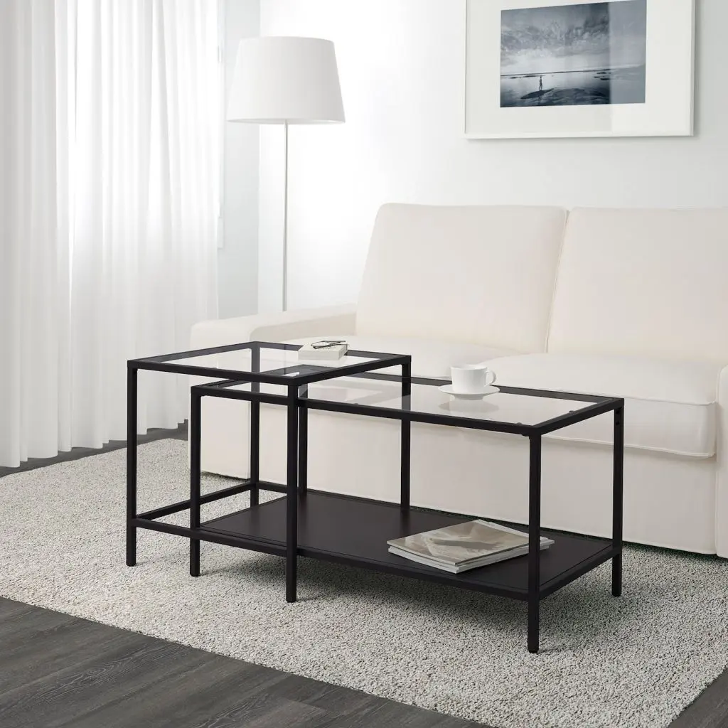 Комплект столов, 2 шт, черно-коричневый, стекло, 90x50 см 5999,00 р.
