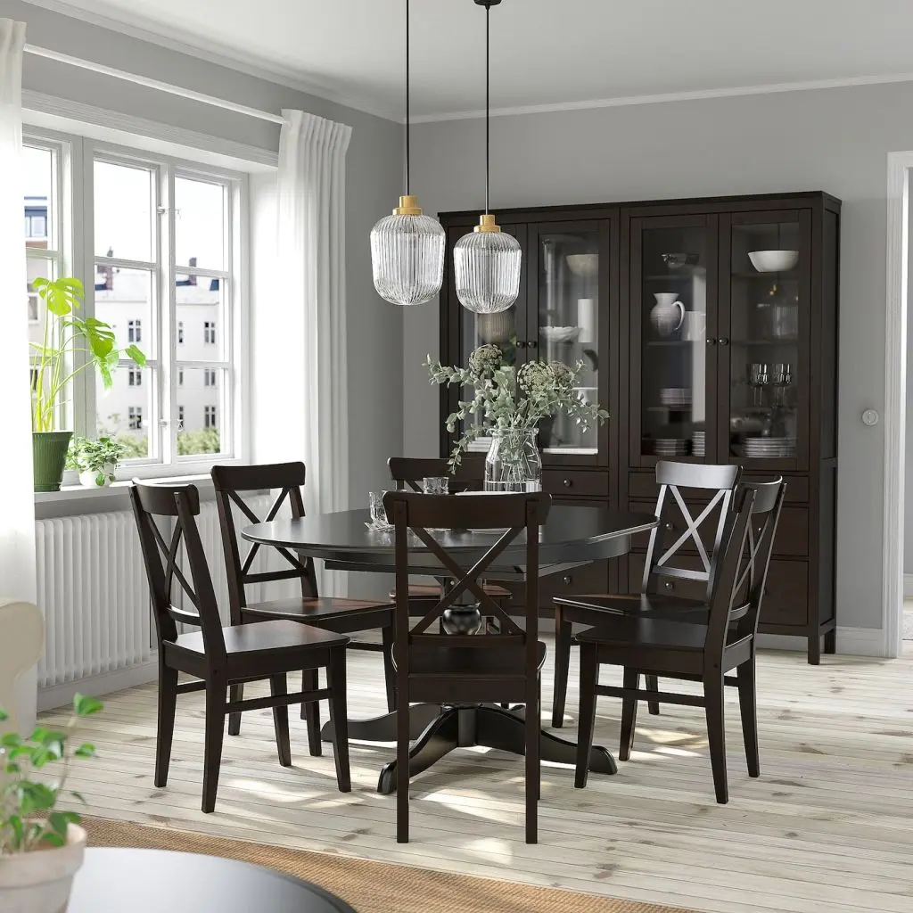 Стол и 6 стульев, темно-коричневый темно-коричневый/Оррста светло-серый, 120/180 см 47993,00 р.