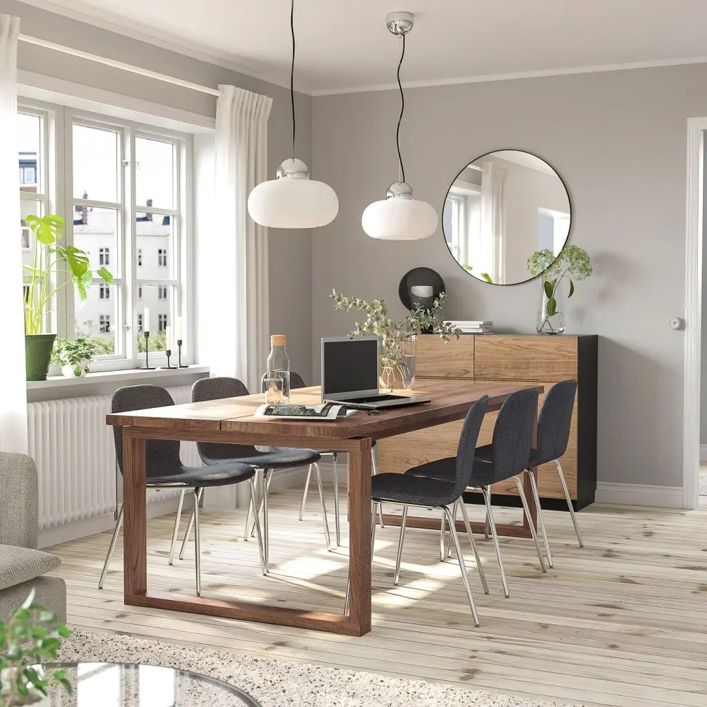 Стол и 6 стульев, дубовый шпон коричневая морилка/Гуннаред классический серый хромированный, 220x100 см 95993,00 р.