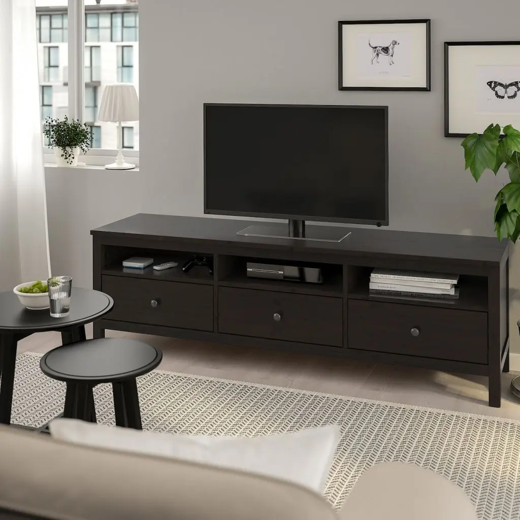 Тумба для телевизора ХЕМНЭС — это гармоничное сочетание натурального дерева и актуальной функциональности. Большие ящики для игр, пультов управления и аксессуаров. Кабель-канал в задней панели для аккуратного размещения кабеля.