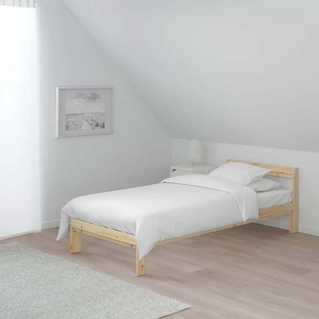 Чтобы необработанная поверхность из массива дерева служила дольше, ее можно обработать лаком, воском, морилкой или маслом.Под кроватью можно разместить ящики — отличное решение для хранения подушек и одеял.Пространство под кроватью можно без труда почистить пылесосом.Реечное дно кровати, матрас и постельное белье продаются отдельно.Каркас кровати следует использовать только с реечным дном ЛУРОЙ, чтобы матрас был расположен на правильной высоте.Дизайнер