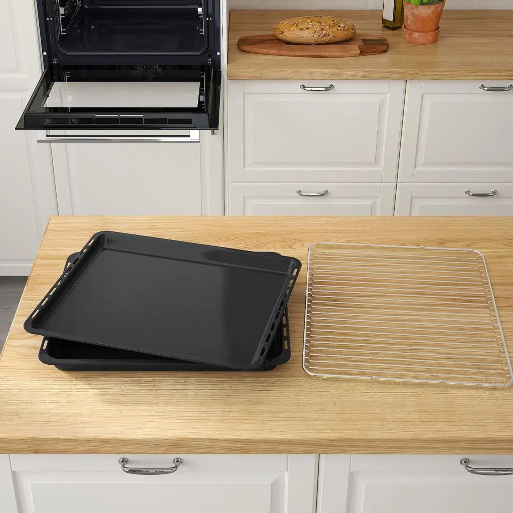 Бесплатно 5 лет гарантии. Подробнее об условиях гарантии — в гарантийной брошюре.Этот товар имеет маркировку CE.Полезный объем: 72 литра.Напряжение: 220-240 В.Необходим предохранитель мин. 16 A. 1 проволочная полка прилагается.1 противень прилагается.1 поддон для гриля прилагается.1 комплект телескопических направляющих прилагается.Вилка не прилагается. Установка должна производиться квалифицированным специалистом.Дизайнер
