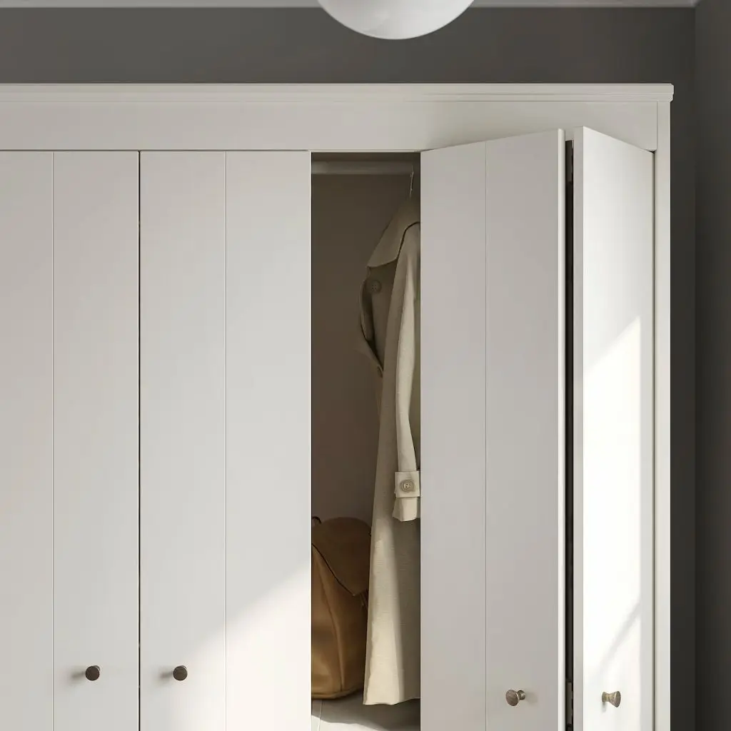 Сочетание классического дизайна и современной функциональности. Складные дверцы гардероба ИДАНЭС помогают экономить место, а съемные полки позволяют регулировать внутреннее пространство в соответствии с потребностями. Прекрасное решение на долгие годы!