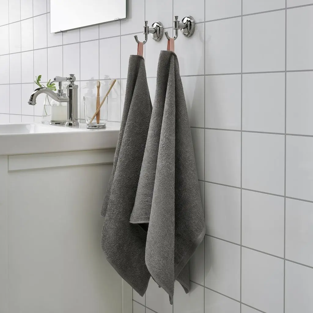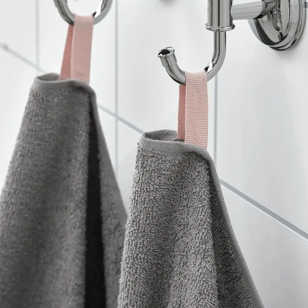 Мягкое серое полотенце с петелькой для подвешивания контрастного цвета — практичной и декоративной деталью. Легкая ткань из смеси хлопка и вискозы прекрасно впитывает влагу.