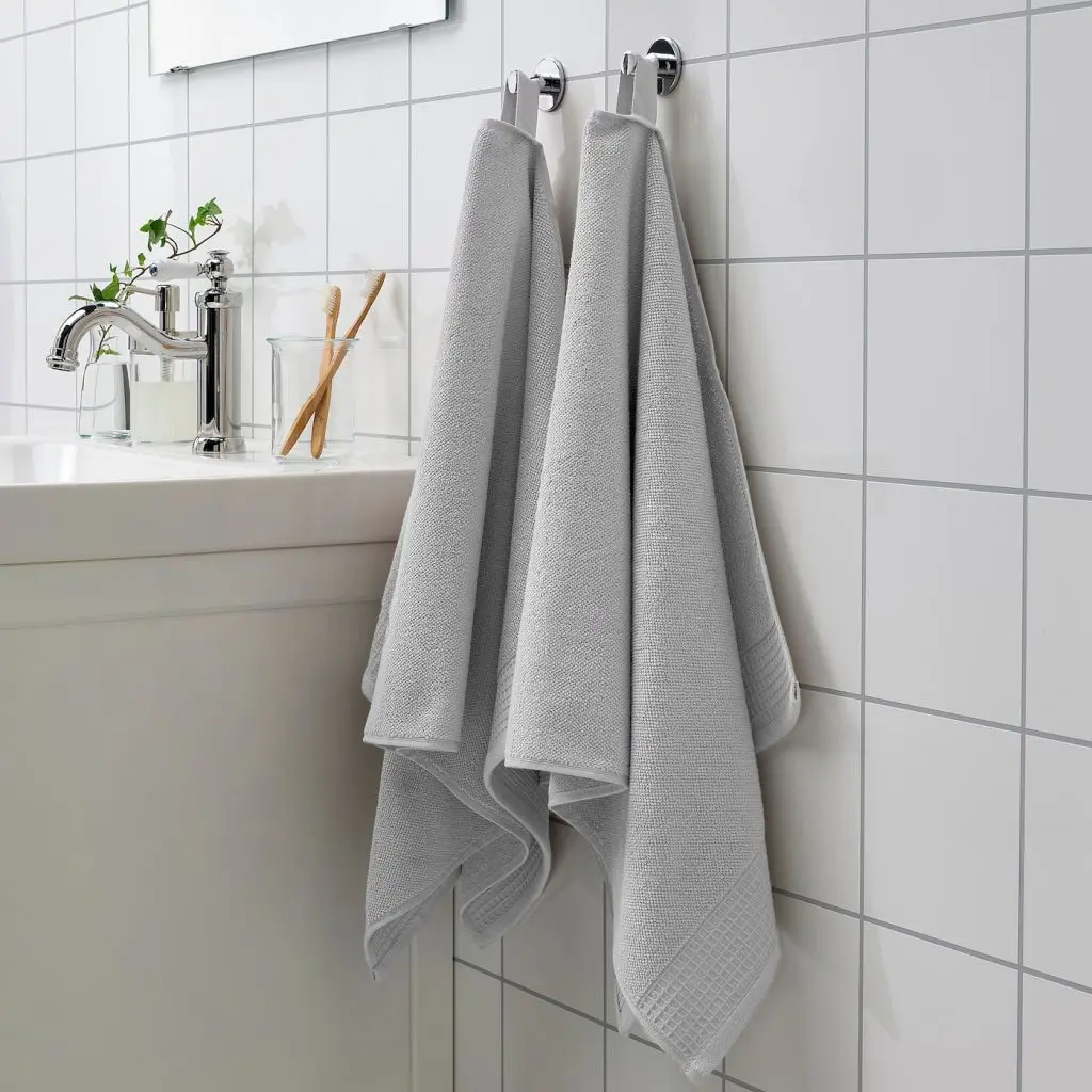 Благодаря смесовой ткани из хлопка и вискозы это мягкое светло-серое полотенце отлично впитывает влагу. Вафельная окантовка делает его особенно стильным. Идеально сочетается с полотенцами ВАЛЛАСОН.
