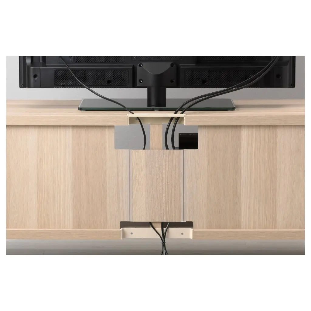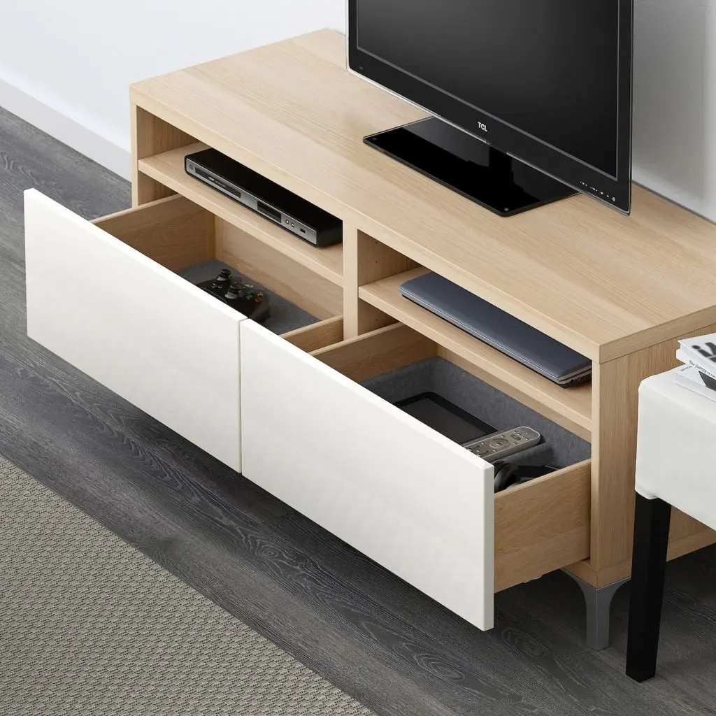 Благодаря доводчикам ящики закрываются плавно и бесшумно.Благодаря нескольким отверстиям на задней панели тумбы под ТВ провода от телевизора и других устройств всегда будут под рукой, но не на виду.Два ящика обеспечат порядок в хранении пультов, игровых приставок и других аксессуаров для ТВ.Специальное отверстие в верхней панели обеспечит удобное и компактное размещение проводов.Ножки придают комбинации БЕСТО более легкий вид, поднимая модули на полом. Кроме того, это упрощает уборку.Эту мебель необходимо крепить к стене с помощью прилагаемого стенного крепежа.Макс. нагрузка на верхнюю панель этой тумбы под ТВ: 50 кг.Для разных стен требуются различные крепежные приспособления. Подберите подходящие для ваших стен шурупы, дюбели, саморезы и т. п. (не прилагаются).Максимальная нагрузка на закрепленный на стене модуль зависит от материала стены.Можно дополнить ручками.Внутренние элементы для организации хранения в модулях БЕСТО продаются отдельно.Дизайнер