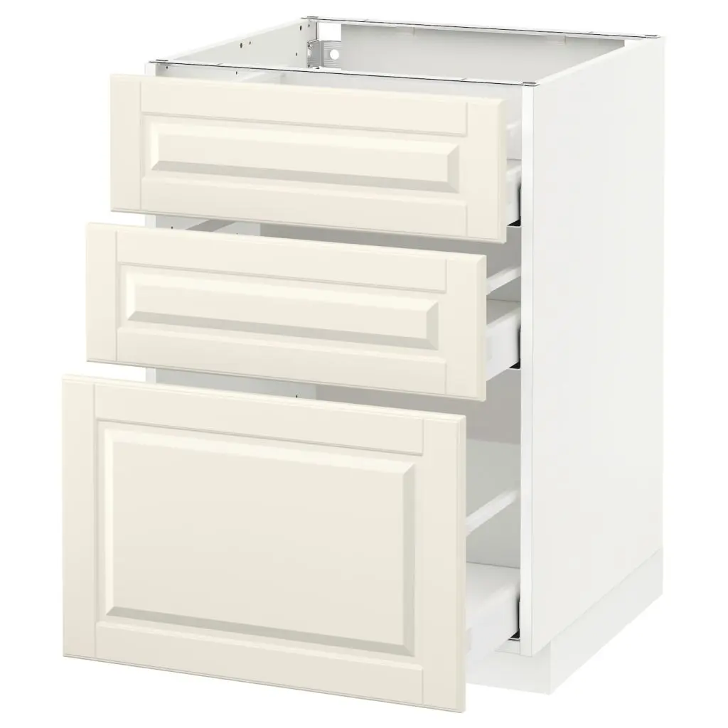 Код кухонного шкафа ME/MA 194Благодаря доводчику ящики закрываются плавно, мягко и бесшумно.Ящик напольного/высокого шкафа выдвигается полностью, обеспечивая удобный доступ к содержимому.Ящик с плавным ходом.Последние несколько сантиметров ящик закрывается автоматически.Каркас имеет устойчивую конструкцию благодаря стенкам из ДСП толщиной 18 мм.Для разных стен требуются различные крепежные приспособления. Подберите подходящие для ваших стен шурупы, дюбели, саморезы и т. п. (не прилагаются).Ножки и цоколи продаются отдельно.Дизайнер