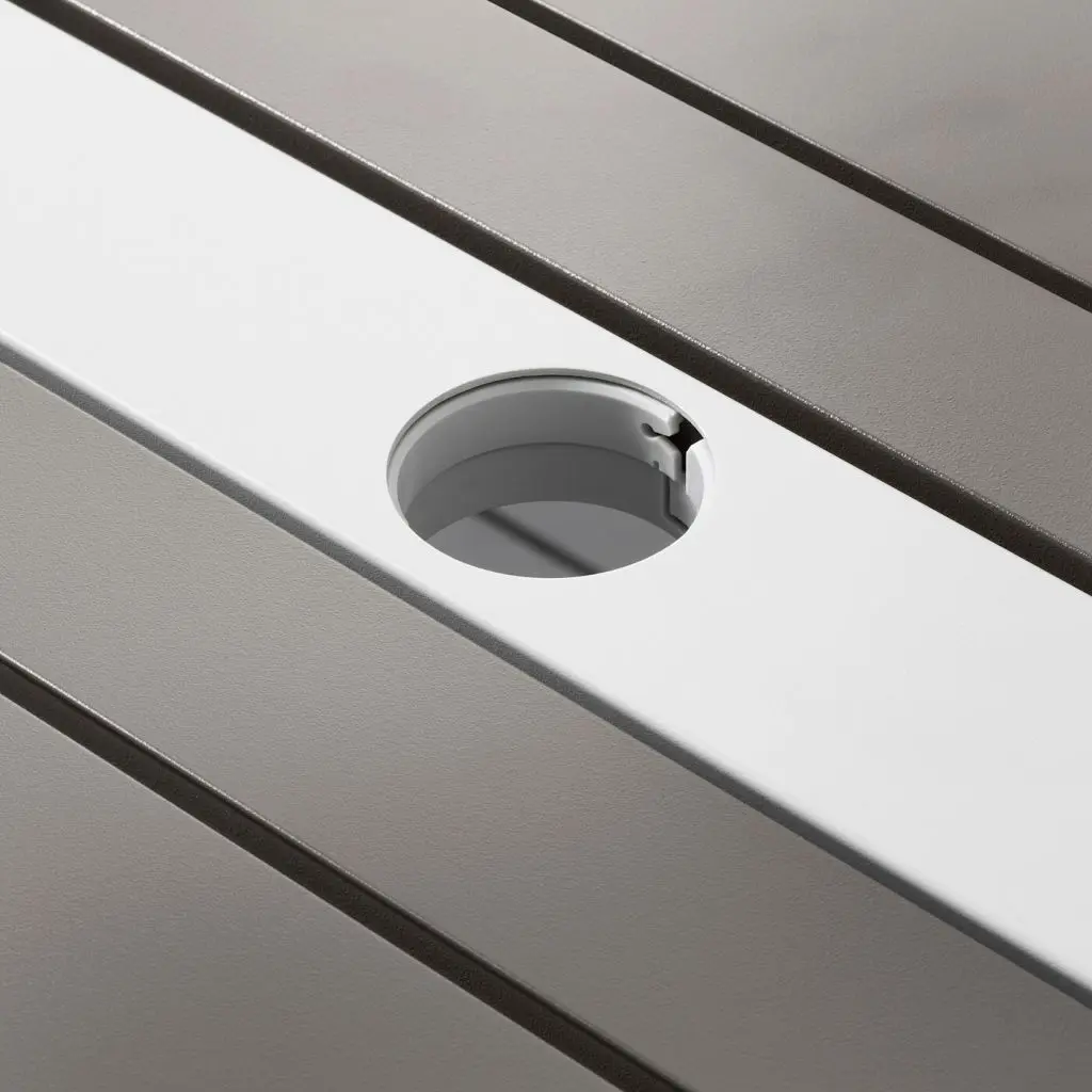 Отверстие в центре столешницы позволяет установить зонт от солнца.Каркас из алюминия – прочный, легкий, простой в уходе материал, устойчивый к появлению ржавчины.Легко поддерживать в чистоте – достаточно протереть влажной тканью.На 4-6 человек.Дизайнер