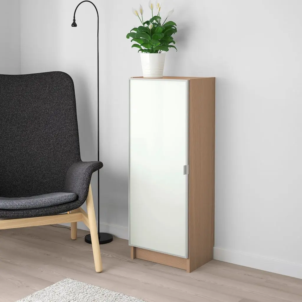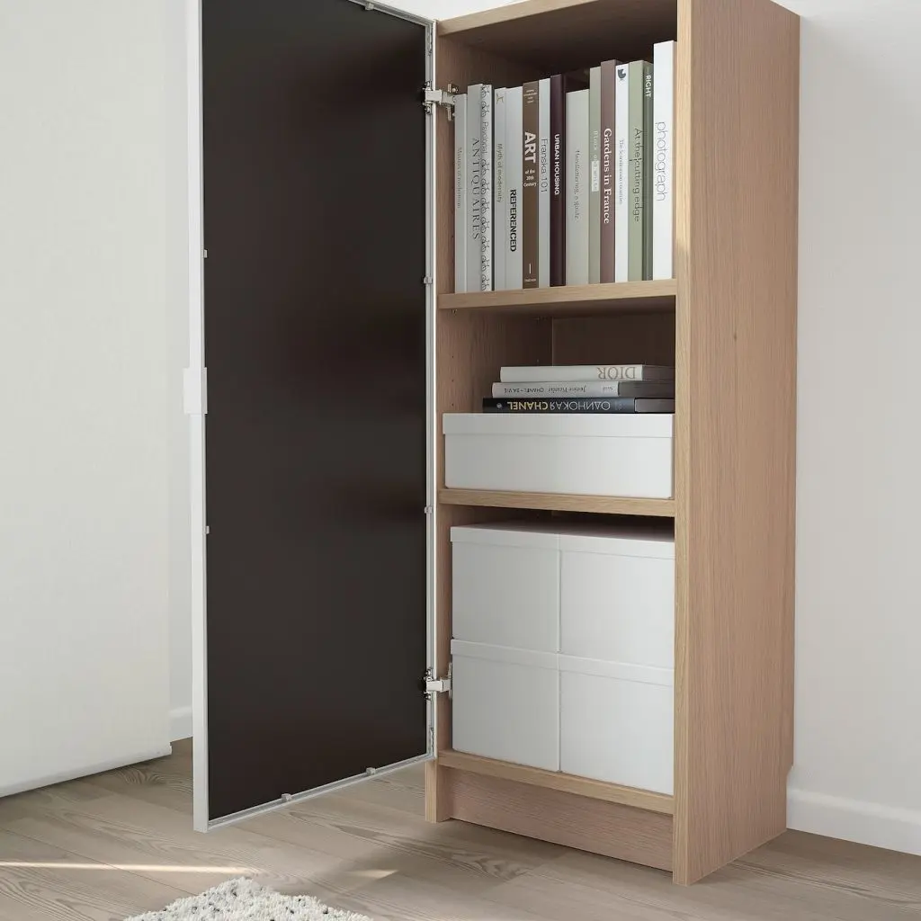 Создайте собственный дизайн дверцы, вставив фотографию или ткань между стеклом и панелью.Модуль может использоваться для организации хранения в небольшом помещении или станет основой для большей комбинации, если Ваши потребности в хранении изменились.Съемные полки; устанавливайте на разном уровне в соответствии с необходимостью.Конструкция петель позволяет отрегулировать и выровнять дверцу по вертикали и по горизонтали. Отделка из шпона. Эту мебель необходимо крепить к стене с помощью прилагаемого стенного крепежа.Будьте осторожны при обращении со стеклом! Из-за поврежденных краев и царапин на поверхности стекло может внезапно треснуть и/или разбиться. Избегайте ударов сбоку, там стекло наиболее уязвимо.Для разных стен требуются различные крепежные приспособления. Подберите подходящие для ваших стен шурупы, дюбели, саморезы и т. п. (не прилагаются).Белая/черная панель для закрепления за стеклом прилагается.2 полки прилагаются.Можно установить на угловой модуль, только если полка, находящаяся рядом с ним, без дверец.Дверь не подходит для стеллажей, которые были приобретены весной 2014 года или раньше.Дизайнер