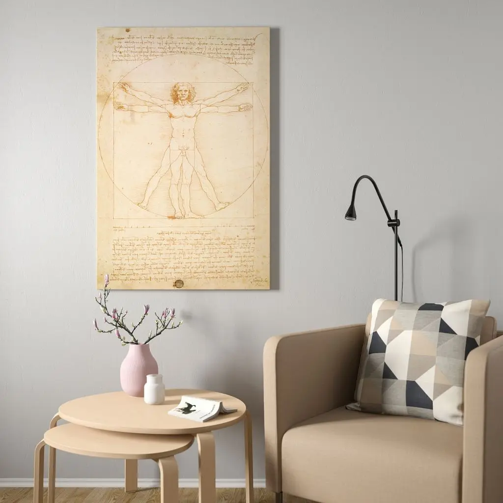 Автор: Леонардо да Винчи.Картина и рама продаются в отдельных упаковках.Создайте арт-объект, который идеально подойдет для вашего интерьера, выбрав мотив изображения, размер картины и цвет рамы.Картину можно вставить в раму или натянуть холст на раму, чтобы рама была не видна.Если вам захочется перемен, вы легко сможете заменить картину или вставить в раму красивую ткань.Удобно довезти домой, так как рама продается в разобранном виде в компактной упаковке, а картина свернута в рулон.Для разных стен требуются различные крепежные приспособления. Подберите подходящие для ваших стен шурупы, дюбели, саморезы и т. п. (не прилагаются).Шурупы для крепления к стене не прилагаются.Дизайнер