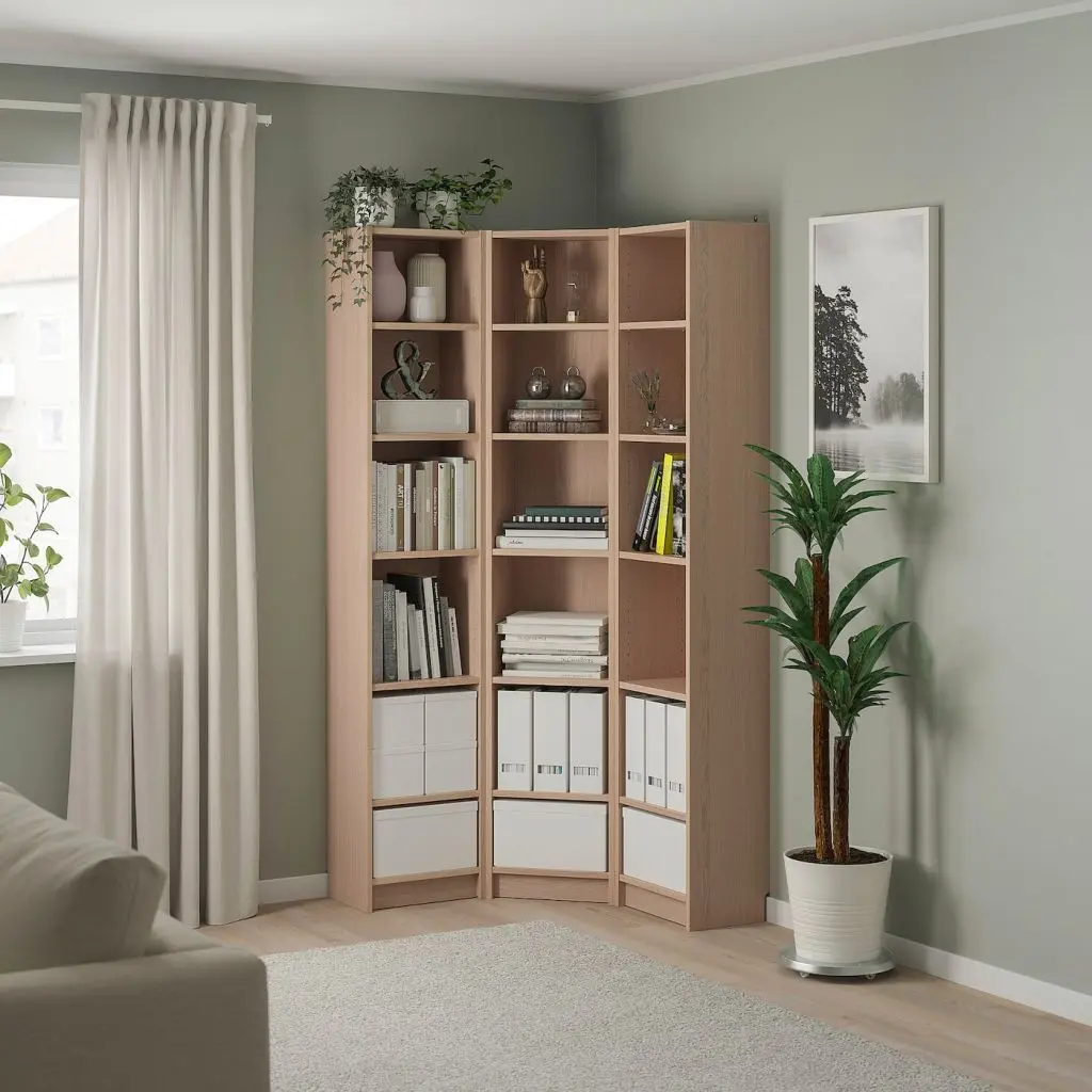 Съемные полки; устанавливайте на разном уровне в соответствии с необходимостью.Отделка из шпона. Благодаря угловым креплениям БИЛЛИ обычный стеллаж можно использовать, как устойчивую угловую полку.Эту мебель необходимо крепить к стене с помощью прилагаемого стенного крепежа.Для разных стен требуются различные крепежные приспособления. Подберите подходящие для ваших стен шурупы, дюбели, саморезы и т. п. (не прилагаются).Требуемая мин. высота потолка: 205 см.Для расширения площади хранения дополните верхней полкой БИЛЛИ такой же ширины.