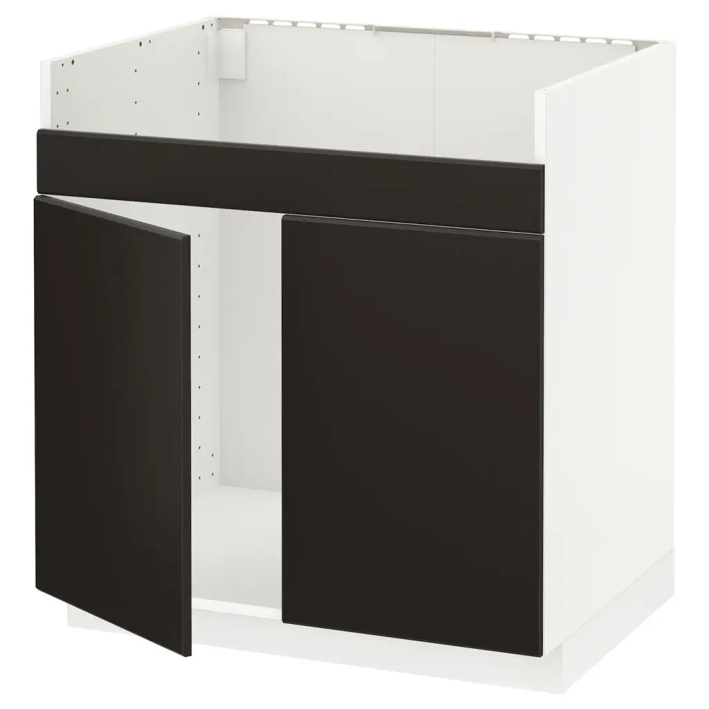 Шкаф п/мойку БРЕДШЁН/2фасада/2ящика, белый/кальхюттан под темно-серый бетон, 80x60 см