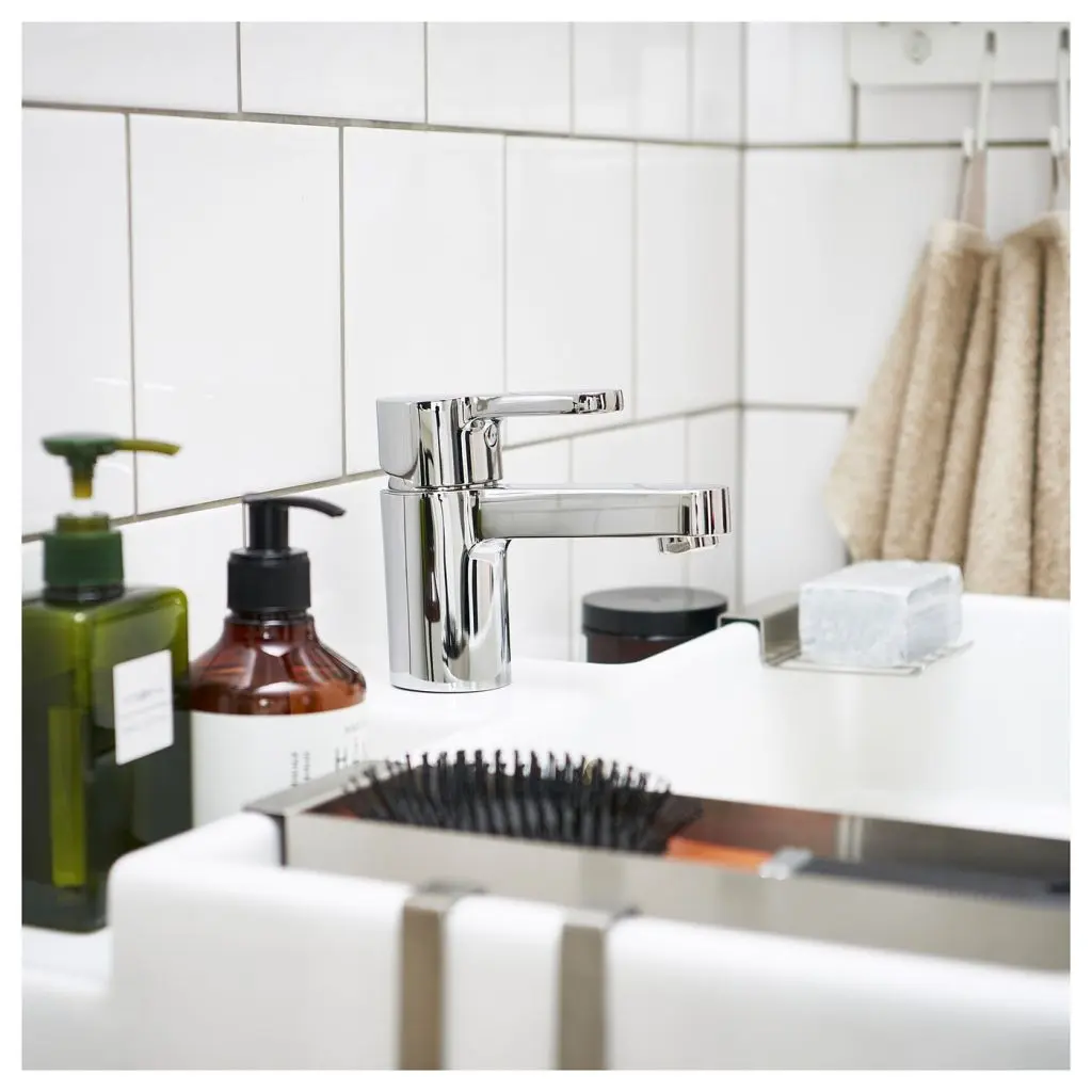 Бесплатно 10 лет гарантии. Подробнее об условиях гарантии – в гарантийной брошюре.Чтобы пустить горячую воду, поверните рычаг влево. Горячая вода расходуется только после этого.Этот смеситель прослужит долгие годы благодаря прочным керамическим дискам, которые выдерживают сильное трение, возникающее в процессе изменения температуры воды.Хромированная латунь – прочный и простой в уходе материал.Интегрированный в смеситель аэратор поддерживает оптимальный напор, при этом используется меньше воды и энергии.Выпуск прилагается.Соединительные шланги на 1/2″ прилагаются. Длина: 50 см. Экономящий воду и энергию (5,7 л/мин.) аэратор для систем с высоким давлением прилагается.Инструмент для установки смесителя прилагаются.Протестировано и сертифицировано в соответствии с государственными и международными стандартами качества, безопасности и гигиеничности.Смеситель может быть использован в системах высокого давления. Выдерживает давление макс. 10 бар (1000 кПа). Рекомендуемое рабочее давление: 1,0–5,0 бар (100 кПа–500 кПа).Макс. температура горячей воды 80°C/176°F.Если у вас возникли сомнения по поводу установки, обратитесь к специалисту.Если у Вас возникли сомнения по поводу установки, обратитесь к специалисту.Подходит для всех раковин из ассортимента ИКЕА, а также для стандартных раковин других производителей.Дизайнер