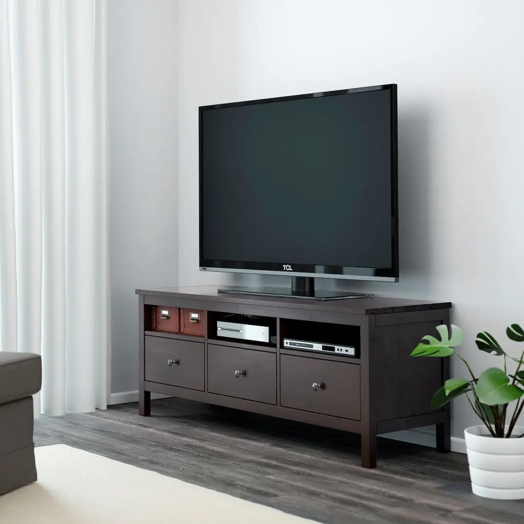Массив дерева.Открытые отделения для DVD-плеера и т.п.Большие ящики обеспечат удобное хранение аксессуаров и порядок.Ручки прилагаются.Комбинируется с другой мебелью из серии ХЕМНЭС.Стоящая на полу тумба под ТВ должна быть закреплена к стене с помощью прилагающего стенного крепежа.Для разных стен требуются различные крепежные приспособления. Подберите подходящие для ваших стен шурупы, дюбели, саморезы и т. п. (не прилагаются).Дизайнер