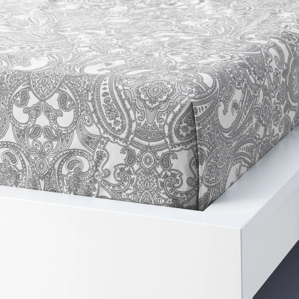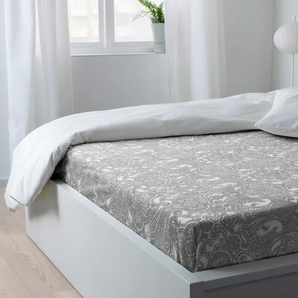 В качестве орнамента мы выбрали узор «пейсли» или «индийский огурец». Вы можете оформить всю постель текстилем с таким рисунком, ведь эта простыня прекрасно сочетается с пододеяльником ЙЭТТЕВАЛЛМО.