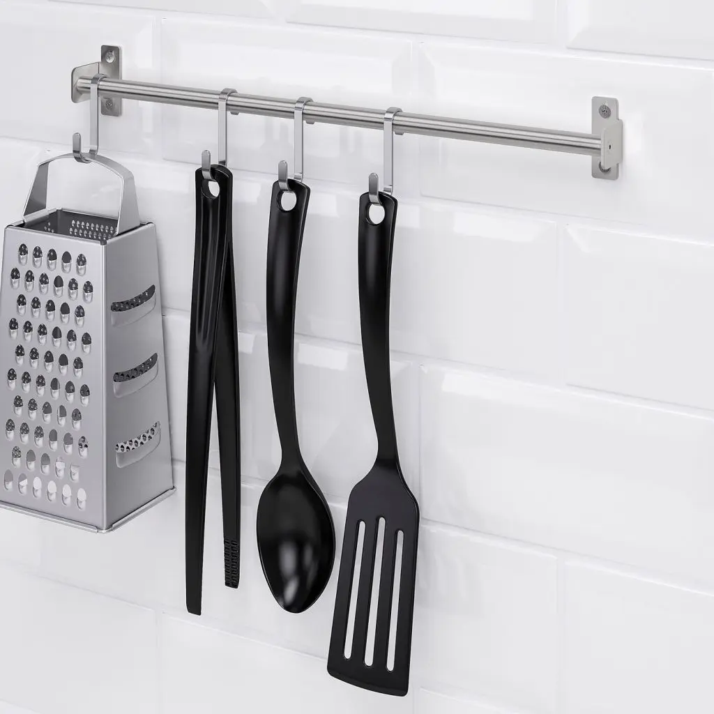 Экономит место на столе.Также можно использовать как штангу для полотенец или подставку для крышек.Вы можете освободить место на столешнице, повесив аксессуары на рейтинг.Также можно использовать в помещениях с высокой влажностью.Для разных стен требуются различные крепежные приспособления. Подберите подходящие для ваших стен шурупы, дюбели, саморезы и т. п. (не прилагаются).Если Вы не уверены, какой тип креплений использовать, обратитесь в специализированный магазин.Для крепления к стене используйте прилагающиеся консоли.Можно комбинировать с другими товарами серии КУНГСФОРС.Рекомендуется использовать только в помещении.Дизайнер