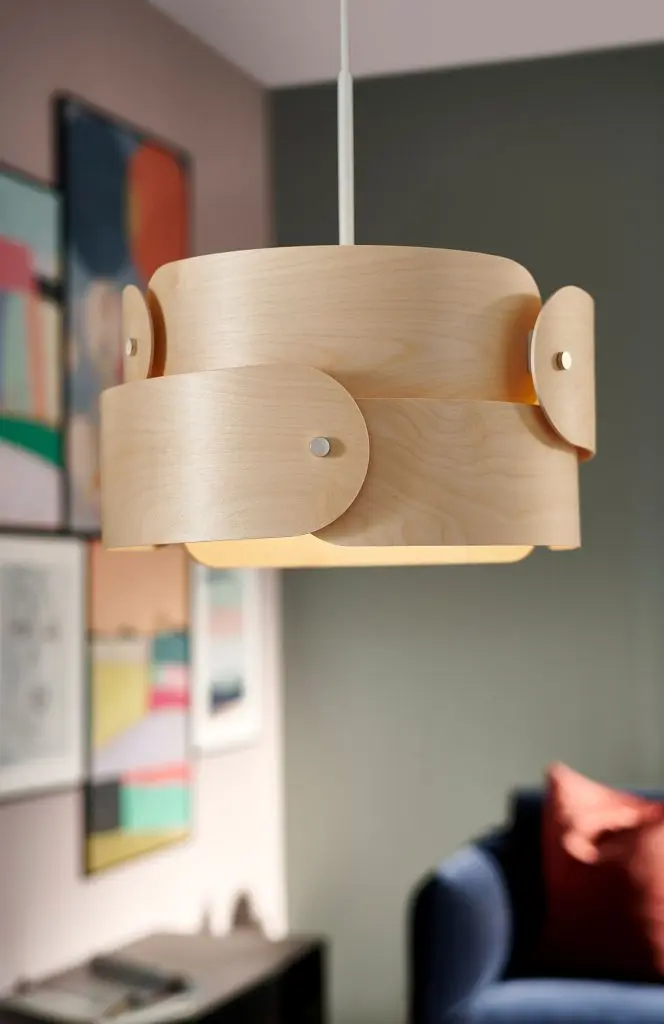 Гармония формы и света. Этот светильник в скандинавском стиле изготовлен из многослойного клееного березового шпона. Будет прекрасно смотреться над обеденным столом, а также в холле или спальне.