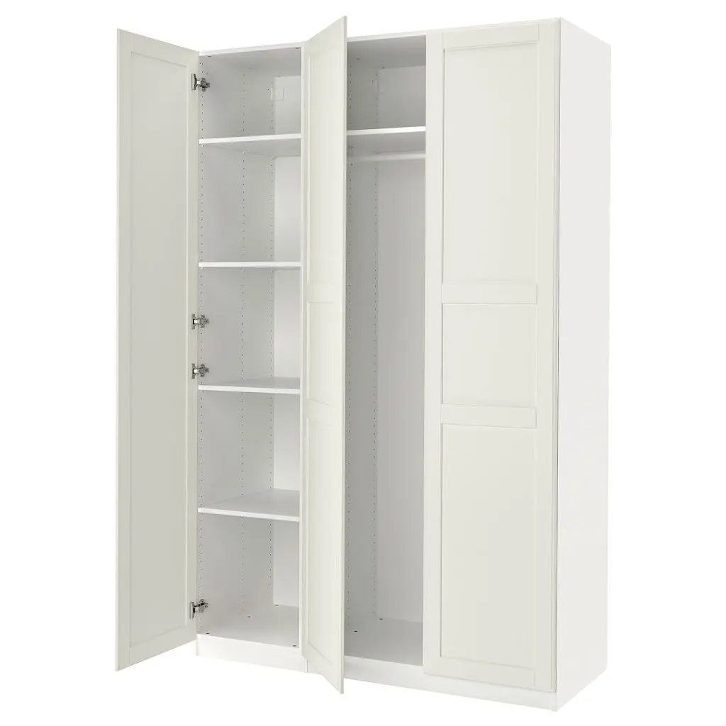 Гардероб, комбинация, белый/зеркальное стекло, 150x60x236 см