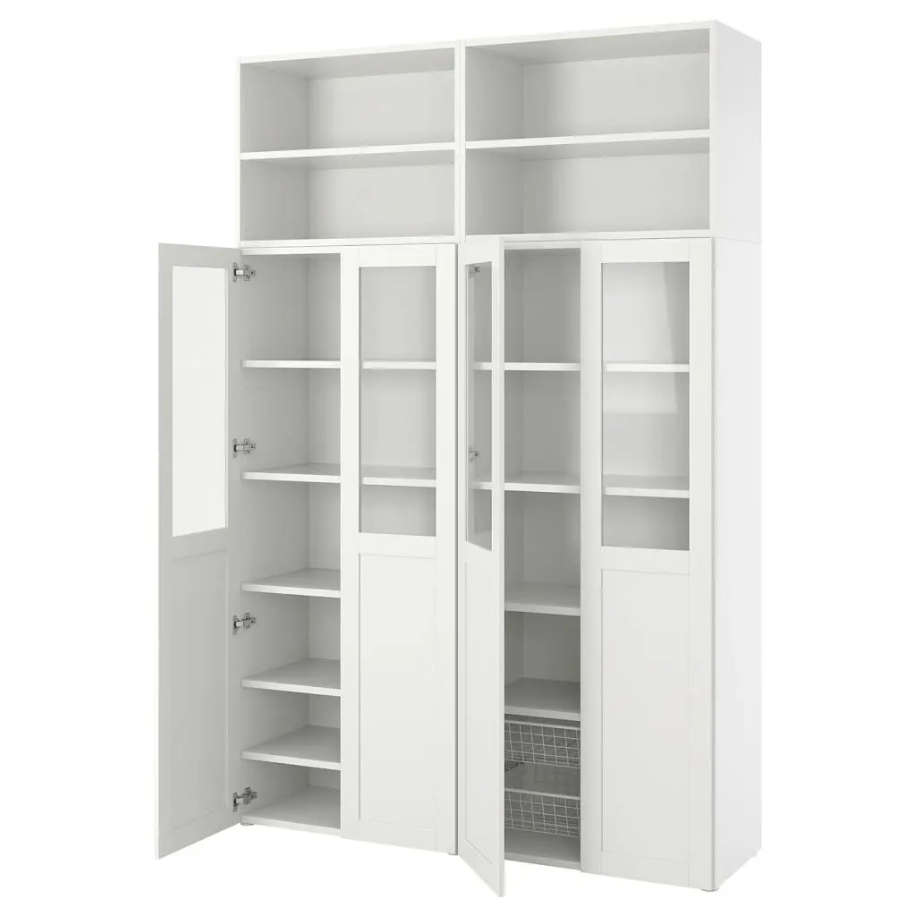 Шкаф для ТВ, комбин/стеклян дверцы, белый/Сельсвикен глянцевый/бежевый матовое стекло, 240x42x231 см