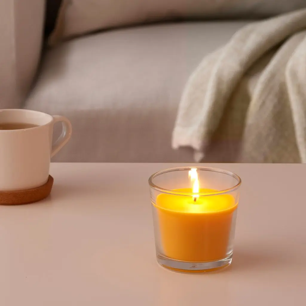 Свеча сохранит красивый цвет и приятный аромат в течение всего времени горения.Когда свеча прогорит, стакан можно использовать как подсвечник для греющей свечи.Вы легко измените внешний вид свечи в стеклянном стакане с помощью подсвечника СКУРАР.Никогда не оставляйте горящую свечу вне поля зрения.Не зажигайте свечи рядом с воспламеняемыми материалами.Дизайнер