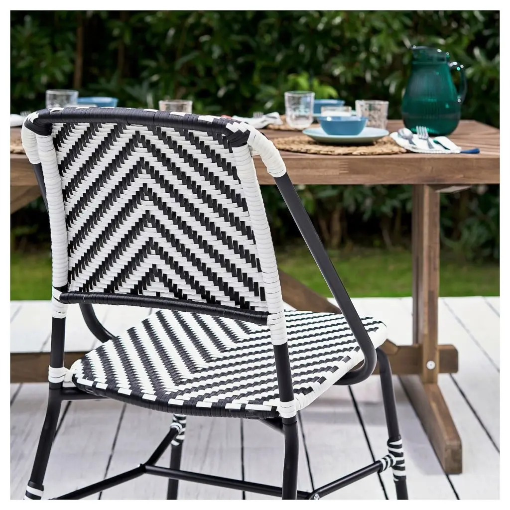 Как будто из французского бистро. Узнаваемый стиль и пластик под ротанг ручного плетения, не требующий ухода, — идеальное решение для долгих семейных ужинов на свежем воздухе