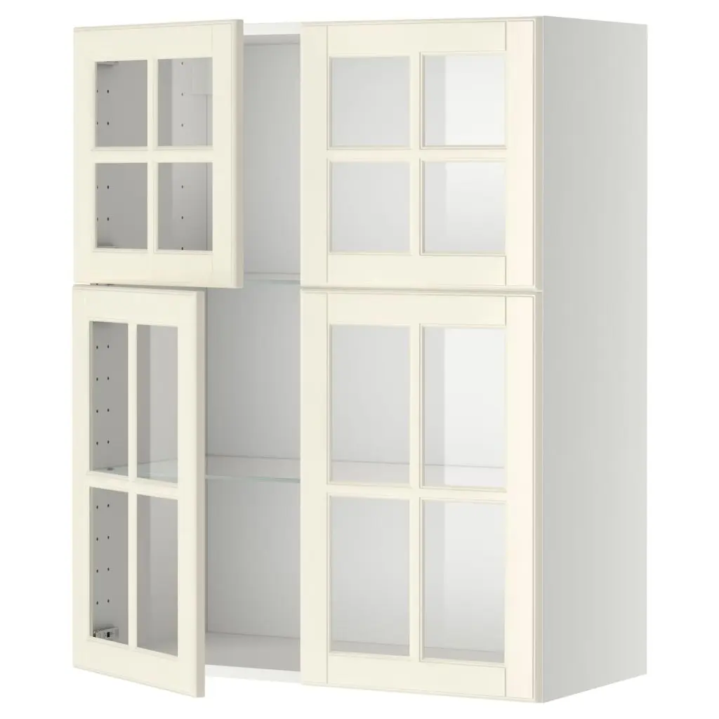 Стеклянные дверцы сделают интерьер более оригинальным и интересным. За ними вы можете выставить красивую посуду, а также установить подсветку, чтобы создать в кухне приятную атмосферу.