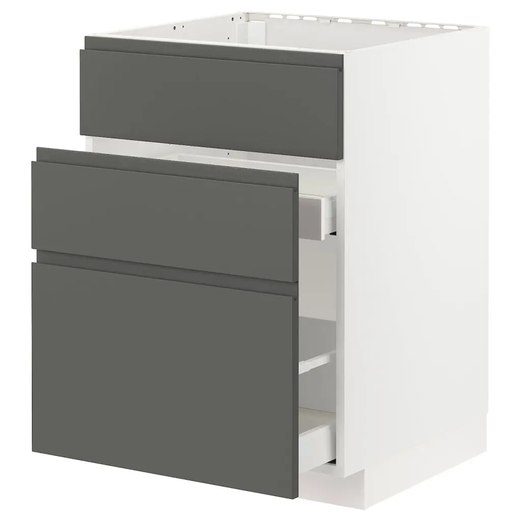 Код кухонного шкафа ME/MA 472Благодаря доводчику ящики закрываются плавно, мягко и бесшумно.Ящики выдвигаются полностью, что обеспечивает удобный обзор и доступ к содержимому.Ящики с плавным ходом и стопором.Самозакрывающиеся ящики.Каркас имеет устойчивую конструкцию благодаря стенкам из ДСП толщиной 18 мм.Для разных стен требуются различные крепежные приспособления. Подберите подходящие для ваших стен шурупы, дюбели, саморезы и т. п. (не прилагаются).Ножки и цоколи продаются отдельно.Дизайнер