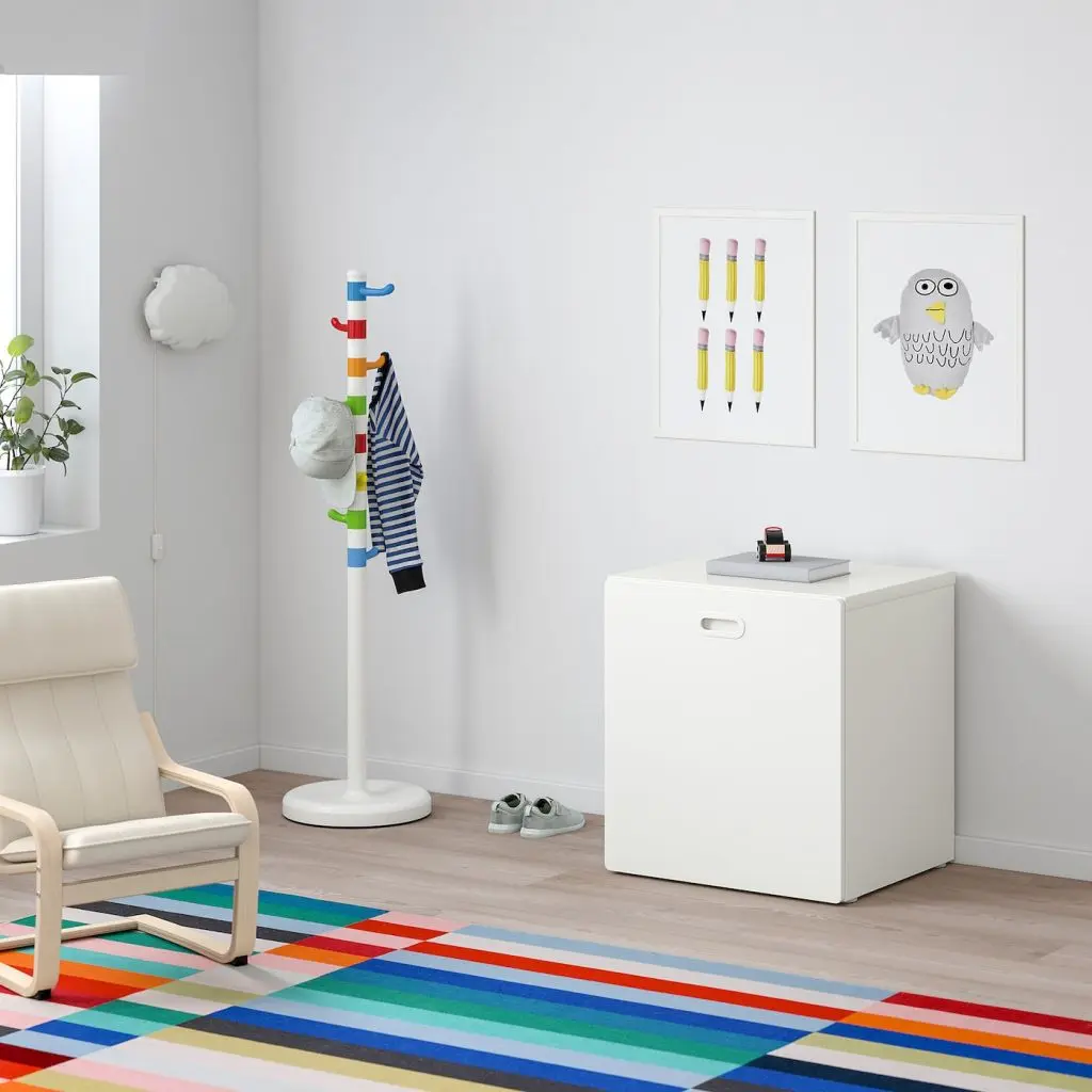 Комфортная для детей высота. Ребенок может самостоятельно достать и убрать игрушку или удобно устроиться с книгой.Достаточно места для больших мягких игрушек и мячей. Практичное решение, чтобы быстро убрать игрушки.Легко выдвигать и задвигать благодаря колесикам и удобной ручке.Благодаря интегрированным ручкам на фронтальной панели нет отверстий, через которые в ящик может попасть пыль.Регулируемые ножки прилагаются, обеспечивают устойчивость даже на неровном полу.ВНИМАНИЕ! ОПАСНОСТЬ ОПРОКИДЫВАНИЯ! Незакрепленная мебель может опрокинуться. Эту мебель необходимо крепить к стене с помощью прилагаемого крепежа для предотвращения опрокидывания.Для разных стен требуются различные стенные крепления. Прилагающиеся шурупы пригодны для дерева, а дюбели можно использовать для гипсокартона/штукатурки, бетона или кирпичной кладки. Руководствуйтесь инструкциями по работе с материалом ваших стен.Дизайнер