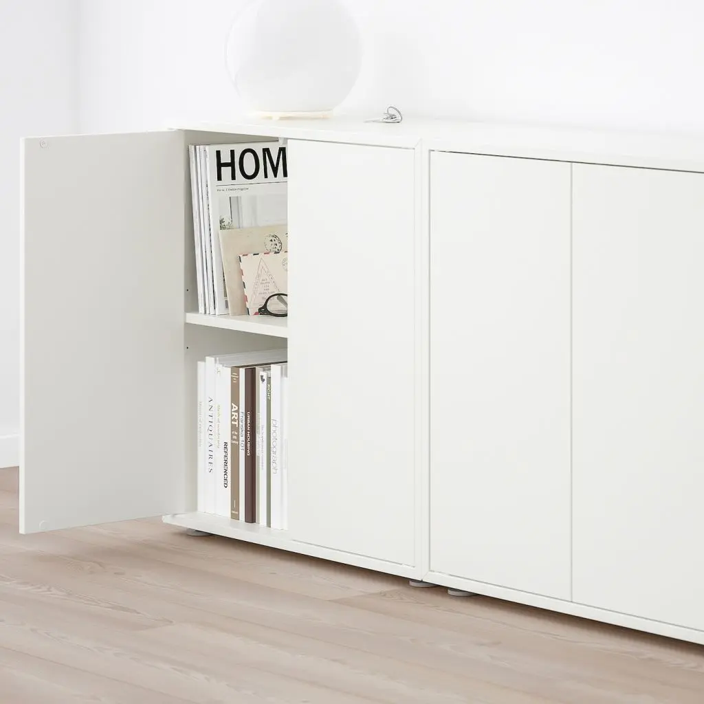 Комбинируйте открытое и закрытое хранение в зависимости от потребностей.Низкая комбинация позволит создать удобное решение для хранения, например, под подоконником.Также можно использовать как скамью в спальне или холле.Дверца со встроенным нажимным механизмом открывается легким нажатием.2 съемные полки позволяют адаптировать пространство в соответствии с потребностями хранения, одна несъемная полка обеспечивает устойчивость.Регулируемые ножки позволяют скорректировать неровности пола.Эту мебель необходимо крепить к стене с помощью прилагаемого стенного крепежа.Для разных стен требуются различные крепежные приспособления. Подберите подходящие для ваших стен шурупы, дюбели, саморезы и т. п. (не прилагаются).Дизайнер