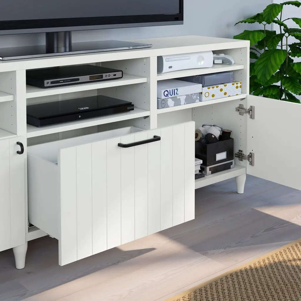 Благодаря нескольким отверстиям на задней панели тумбы под ТВ провода от телевизора и других устройств всегда будут под рукой, но не на виду.Специальное отверстие в верхней панели обеспечит удобное и компактное размещение проводов.Благодаря функции плавного закрывания ящик закрывается мягко и бесшумно.Съемные полки позволяют регулировать пространство.Настенные шкафчики позволяют эффективно использовать пространство над телевизором.Организуйте и оптимизируйте систему для хранения БЕСТО, используя подходящие коробки и вставки.Если вы выберете функцию плавного закрывания, рекомендуем дополнить фасады ручками, чтобы открывать ящики/шкафы было удобнее.Максимальная нагрузка на закрепленный на стене каркас зависит от материала стены.Для разных стен требуются различные крепежные приспособления. Подберите подходящие для ваших стен шурупы, дюбели, саморезы и т. п. (не прилагаются).Эту мебель необходимо крепить к стене с помощью прилагаемого стенного крепежа.Будьте осторожны при обращении с закаленным стеклом! Из-за поврежденных краев и царапин на поверхности стекло может внезапно разбиться.Ручки продаются отдельно.