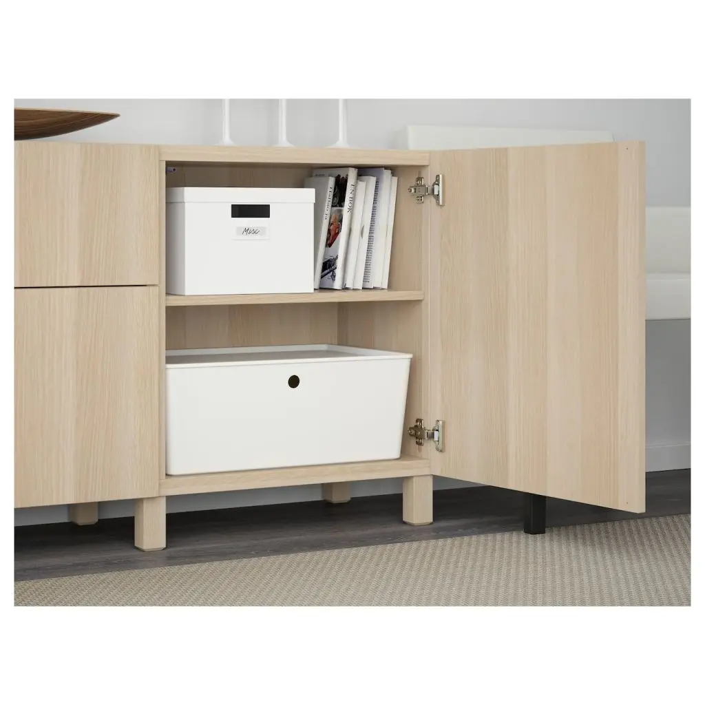 Конструкция петель позволяет отрегулировать и выровнять дверцу по вертикали и по горизонтали. Ящики со встроенным нажимным механизмом открываются легким нажатием.Съемные полки позволяют регулировать пространство.Два ящика и полки за дверцами обеспечат достаточно места для хранения.Организуйте и оптимизируйте систему для хранения БЕСТО, используя подходящие коробки и вставки.Эта комбинация состоит из нескольких частей. Используйте верхнюю панель БЕСТО, чтобы закрыть соединения между каркасами. Продается отдельно.Эту мебель необходимо крепить к стене с помощью прилагаемого стенного крепежа.Для разных стен требуются различные крепежные приспособления. Подберите подходящие для ваших стен шурупы, дюбели, саморезы и т. п. (не прилагаются).Для функционирования нажимного механизма необходимо пространство между каркасом и фронтальной панелью ящика, чтобы ящик открывался нажатием. Небольшой зазор необходим для обеспечения этой функции и не является недостатком товара.