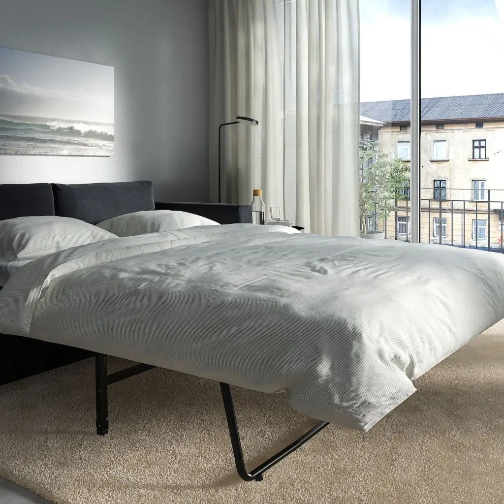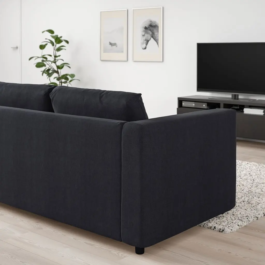 Секции ВИМЛЕ можно по-разному комбинировать, чтобы создать диван, максимально соответствующий вашим потребностям и возможностям помещения. В этой комбинации есть диван-кровать с комфортным высоким матрасом.