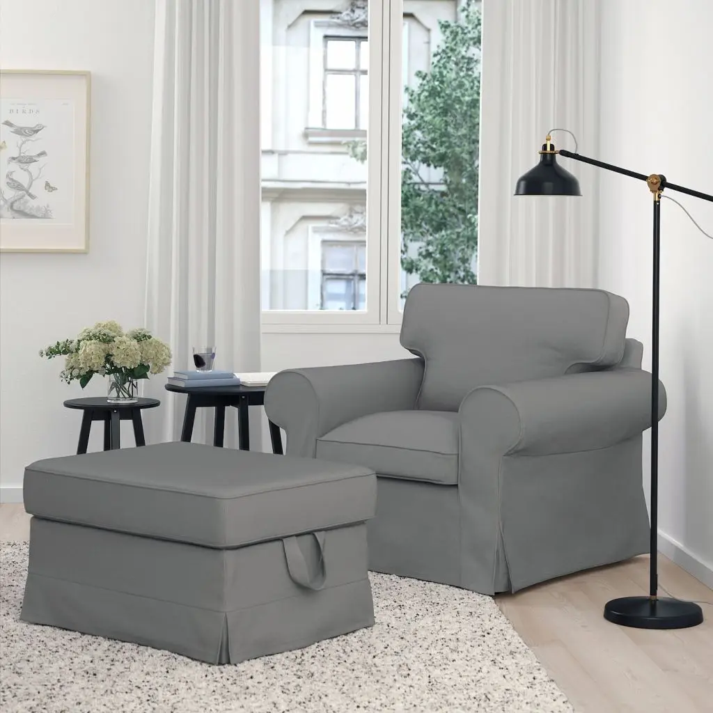 Наша любимая мягкая мебель ЭКТОРП с комфортными подушками отличается нестареющим дизайном. Съемный чехол легко поменять в зависимости от сезона или просто настроения, поэтому на всякий случай купите сразу два – или три.