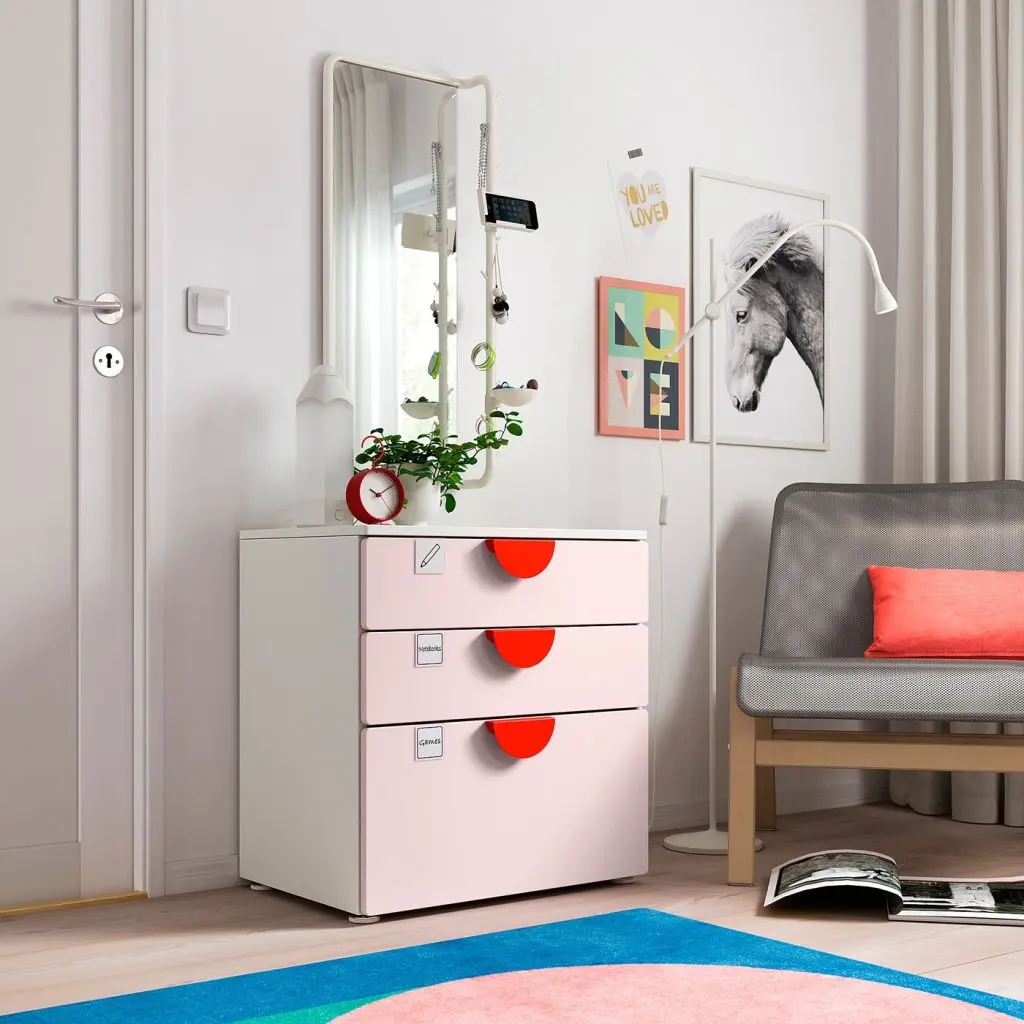 Комод обеспечит возможность хранения большого количества вещей, при этом он займет совсем немного места на полу.Удобная для маленьких детей высота. Ребенок может легко найти и достать нужную вещь самостоятельно.Продуманная конструкция направляющих обеспечивает небольшой обратный ход при открывании, благодаря чему ящик закрывается плотно и без усилий.Регулируемые ножки позволяют скорректировать неровности пола.Неглубокий каркас — идеальное решение для небольших помещений.ВНИМАНИЕ! ОПАСНОСТЬ ОПРОКИДЫВАНИЯ! Незакрепленная мебель может опрокинуться. Эту мебель необходимо крепить к стене с помощью прилагаемого крепежа для предотвращения опрокидывания.Для разных стен требуются различные крепежные приспособления. Подберите подходящие для ваших стен шурупы, дюбели, саморезы и т. п. (не прилагаются).Ручки продаются отдельно.Чтобы вам было легче находить нужное, а также приучить ребенка самостоятельно убирать и доставать свои вещи, можно дополнить окошками для этикетки ХЭНГИГ (продаются отдельно)Можно дополнить коробками УППРЮМД — отличное решение для хранения различных мелочей, которые обычно так легко теряются. Продаются отдельно.