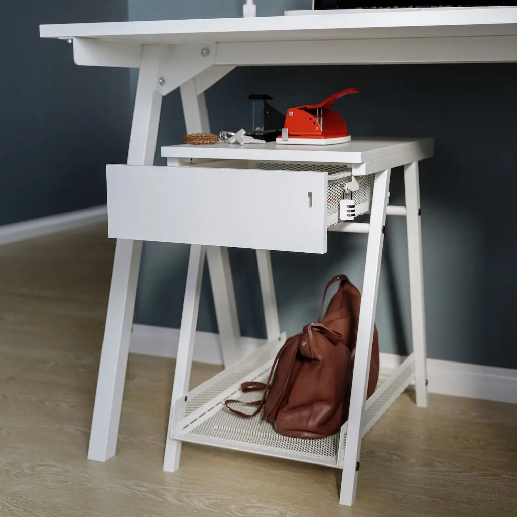 Стол и комбинация для хранения, и рабочий стул белый/бежевый,