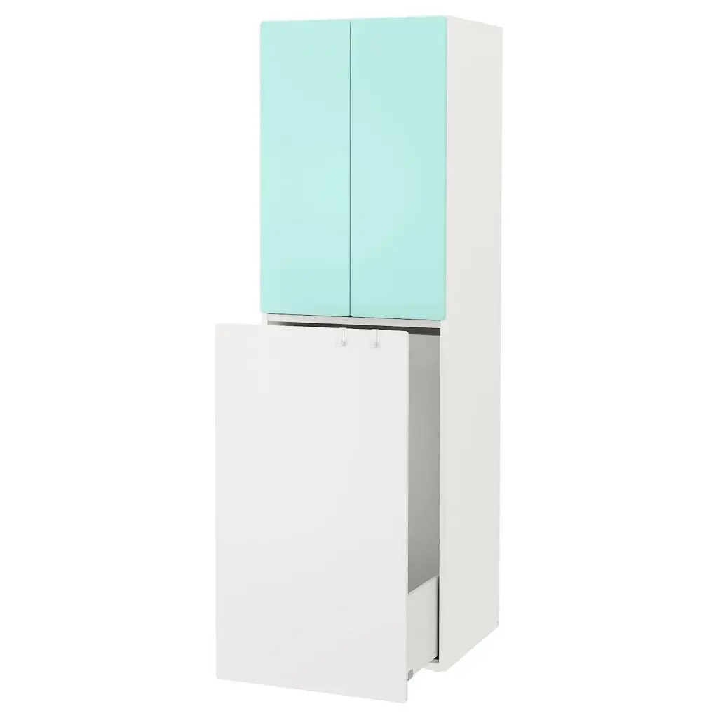 Гардероб с выдвижным модулем, белый бледно-бирюзовый/с платяной штангой, 60x57x196 см