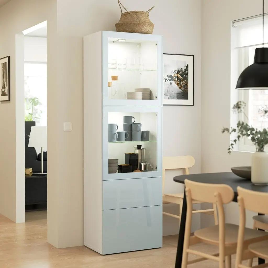Ненужные вещи, которые часто валяются в беспорядке, можно спрятать, а любимые предметы выставить на всеобщее обозрение за стеклянными дверцами. Практичное решение для хранения и демонстрации любимых вещей с уникальным характером.