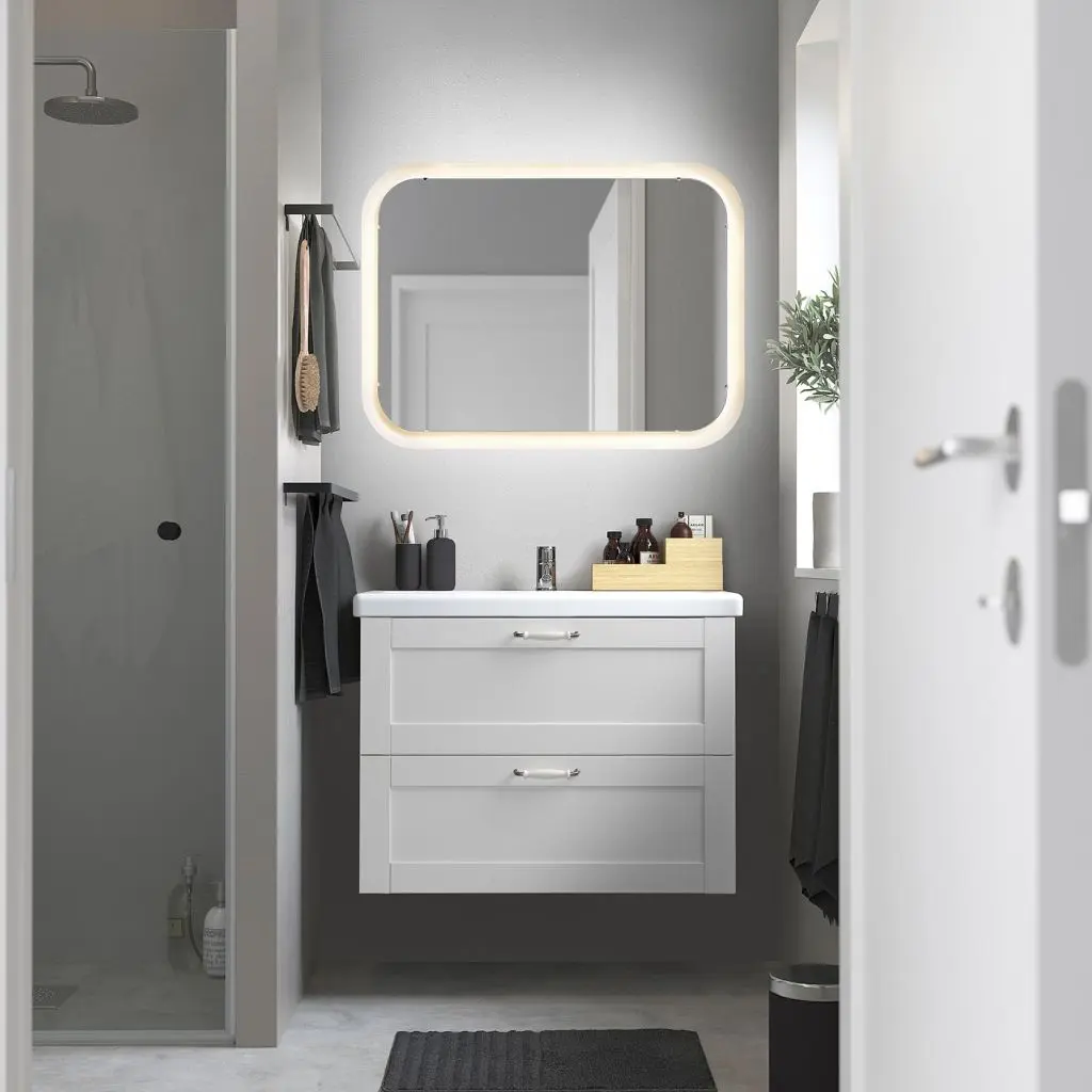 Этот напольный шкаф шириной 80 см обеспечит вашим вещам место, которого они заслуживают.Вещи, которые используются часто — ватные диски, щетки и средства гигиены, удобно хранить в верхнем ящике, а для полотенец используйте нижний ящик.Плоские зеркала делают ванную комнату более просторной. Специальная пленка защитит стекло от повреждений и сделает зеркало более безопасным.Интегрированный в смеситель аэратор поддерживает оптимальный напор, при этом используется меньше воды и энергии.Раковина устойчива к воздействию большинства химикатов, за исключением сильных кислот и щелочей.При возникновении вопросов по установке обратитесь к специалисту. Установку необходимо осуществлять в соответствии с местными строительными и сантехническими нормативами.