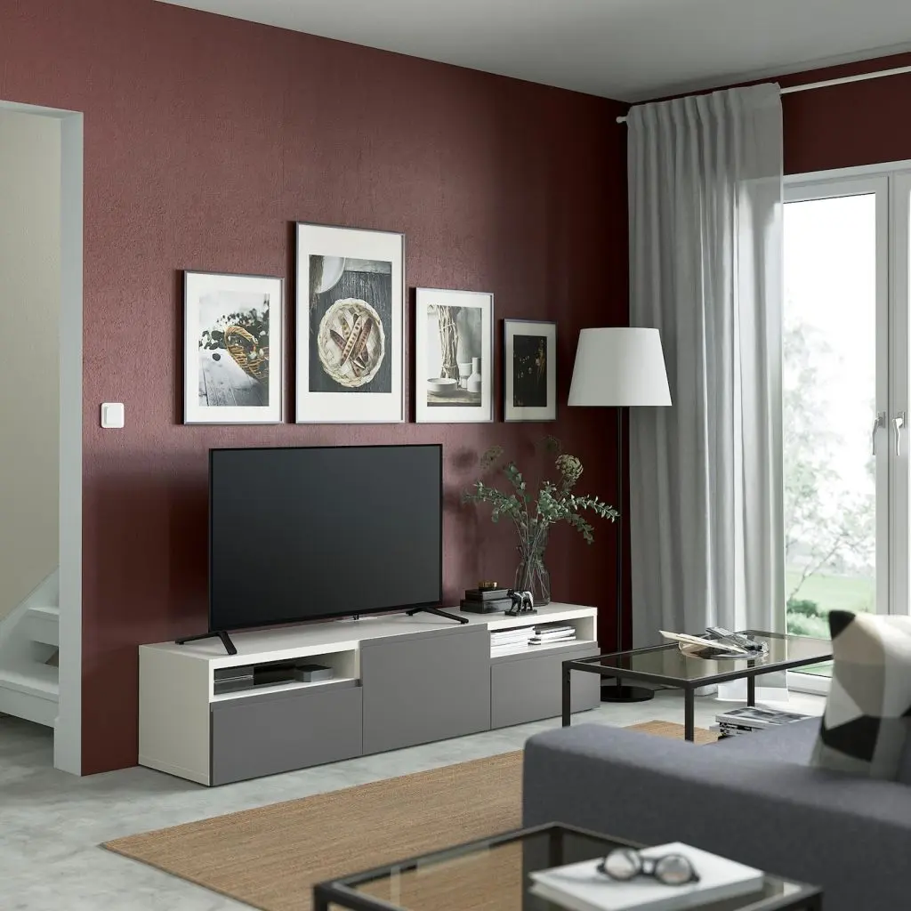 Фронтальные панели ВЭСТЕРВИКЕН с интегрированной ручкой позволят вам оформить интерьер в современном лаконичном стиле.Благодаря доводчикам ящики закрываются плавно и бесшумно.Благодаря нескольким отверстиям на задней панели тумбы под ТВ провода от телевизора и других устройств всегда будут под рукой, но не на виду.Два ящика обеспечат порядок в хранении пультов, игровых приставок и других аксессуаров для ТВ.Регулируемые ножки обеспечивают устойчивость тумбы под ТВ даже на неровном полу.Организуйте и оптимизируйте систему для хранения БЕСТО, используя подходящие коробки и вставки.Тумбу под ТВ необходимо крепить к стене с помощью прилагающегося стенного крепежа.Максимальная нагрузка на закрепленный на стене модуль зависит от материала стены.Для разных стен требуются различные крепежные приспособления. Подберите подходящие для ваших стен шурупы, дюбели, саморезы и т. п. (не прилагаются).Чтобы создать единый интерьер во всем доме, фасады ВЭСТЕРВИКЕН можно комбинировать с подходящими по стилю кухонными фасадами ВЭСТЕРВИКЕН.