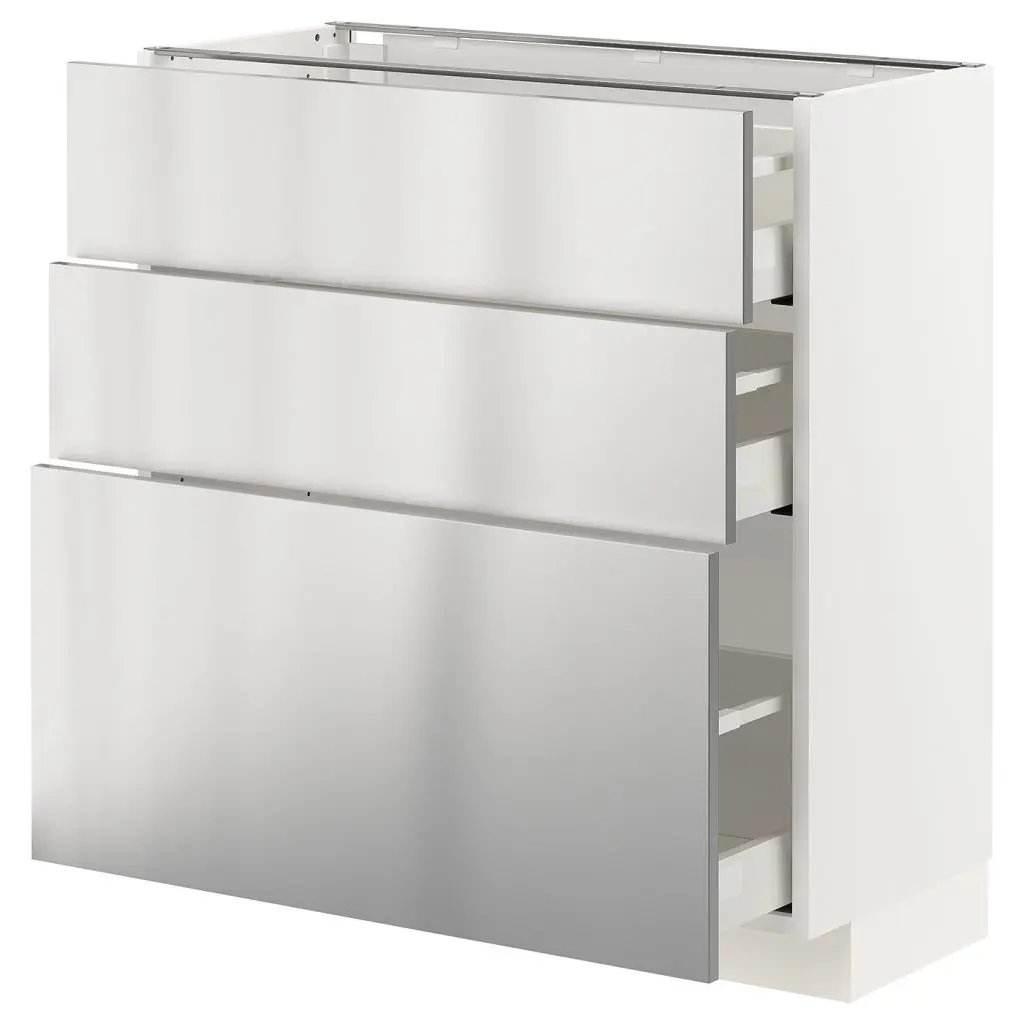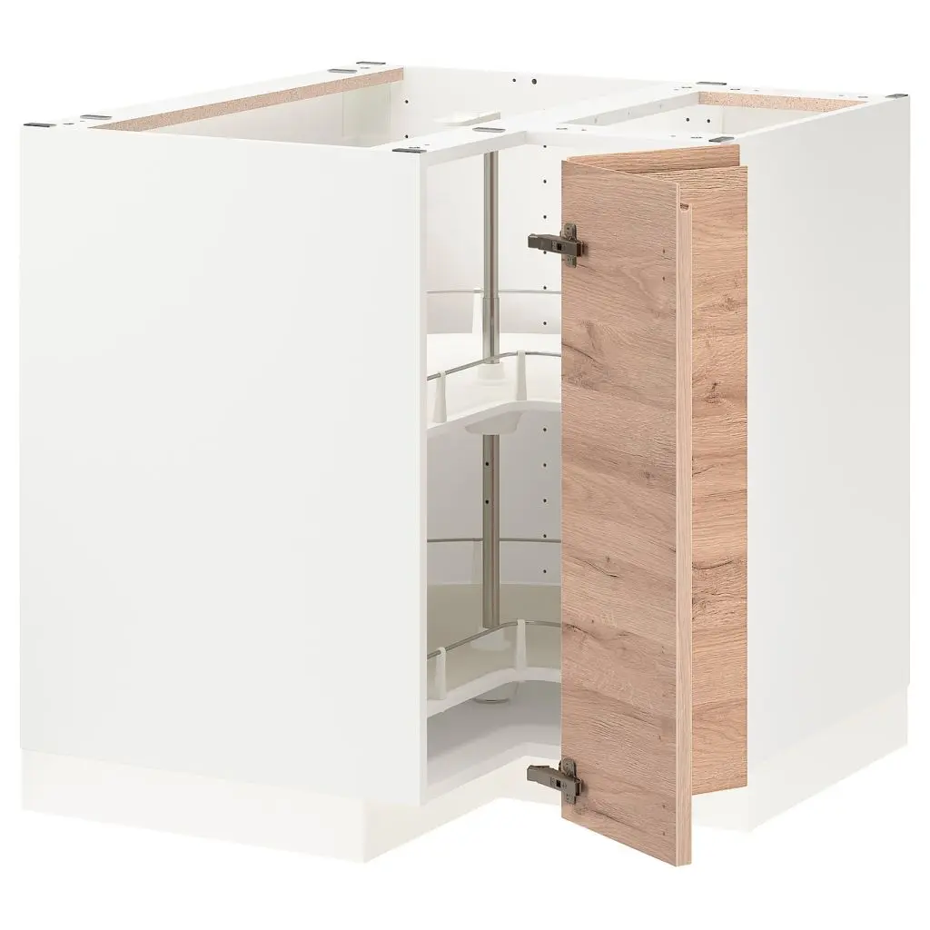 Используйте прилагающуюся белую планку, если Вы размещаете модуль с ящиками под прямым углом к угловому шкафу. Планка может быть прикрыта накладной панелью, чтобы соответствовать дверцам кухонных шкафов.