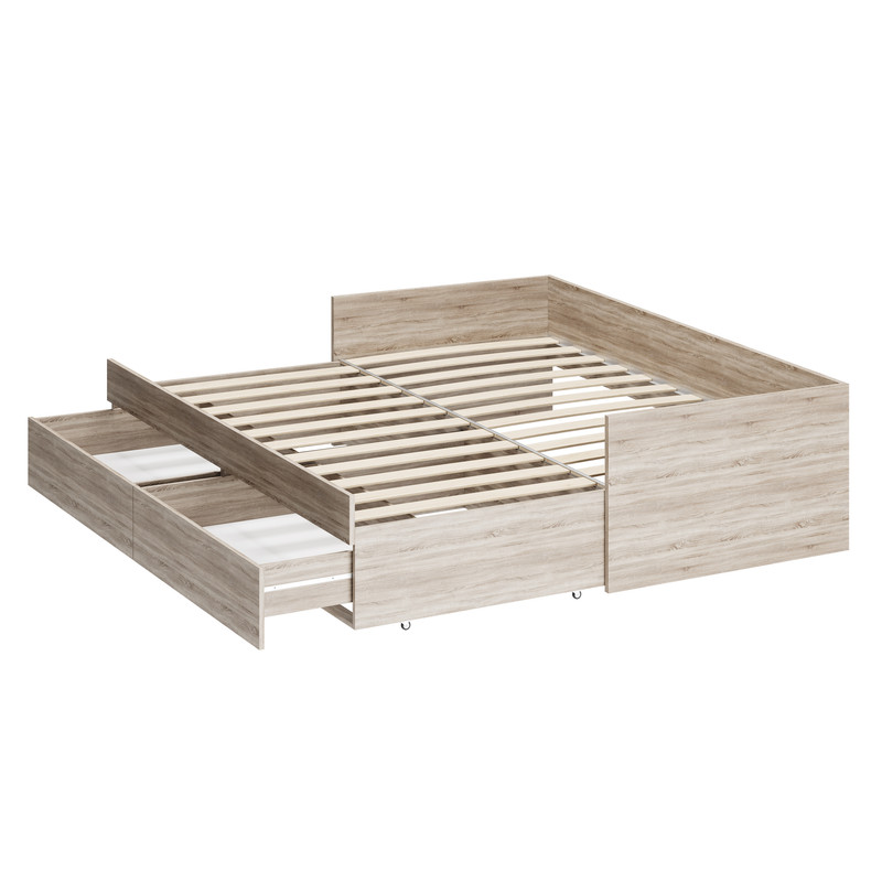 Кровать двухспальная КАСТОР раздвижная с ящиками, с ортопедическим основанием 90/180х200, цвет Дуб Сонома