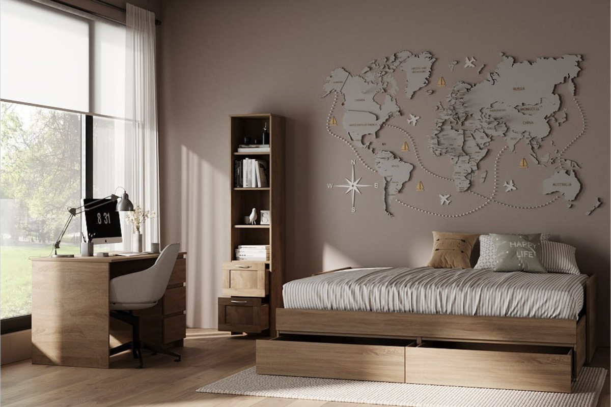 Кровать КАСТОР двухспальная раздвижная с двумя выдвижными ящиками для хранения, с ортопедическим основанием Лурой, 2044х960х575, цвет Дуб Сонома. Спальное место 90/180х200. Изготовлена из кашированного ДСП. Гарантийный срок для жилых помещений 18 месяцев, для общественных помещений — 12 месяцев.