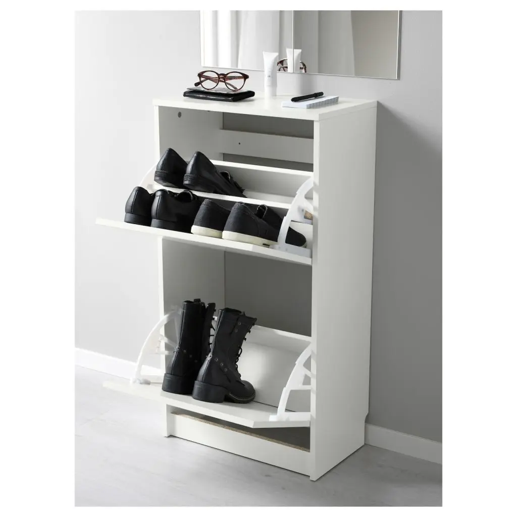 Обеспечивает идеальный порядок в хранении обуви и не занимает много места на полу.Размер отделений можно отрегулировать, переставив или убрав разделители.Благодаря циркуляции воздуха при хранении ваша обувь дольше будет выглядеть как новая.Вмещает мин. 8 пар обуви.Этот шкаф необходимо крепить к стене; для этого на задней панели есть специально подготовленные отверстия.Для разных стен требуются различные крепежные приспособления. Подберите подходящие для ваших стен шурупы, дюбели, саморезы и т. п. (не прилагаются).Дизайнер
