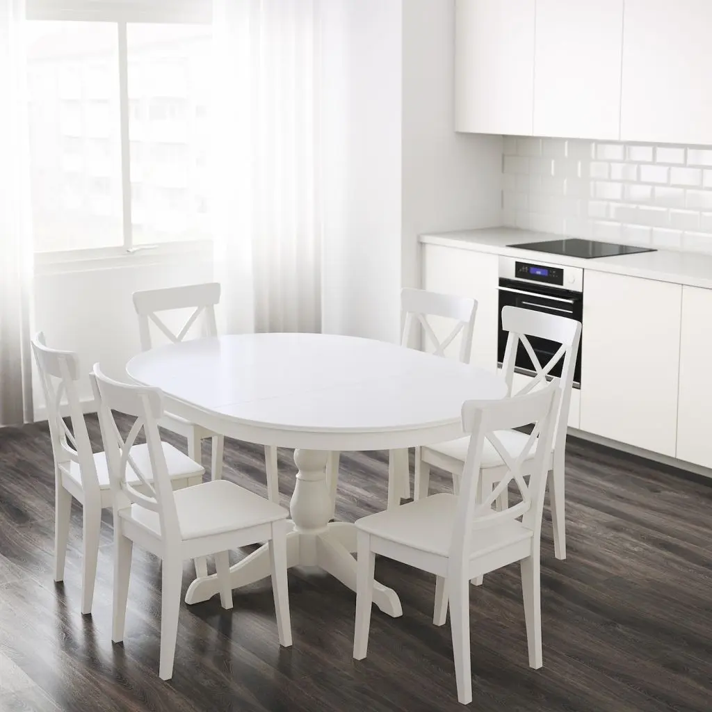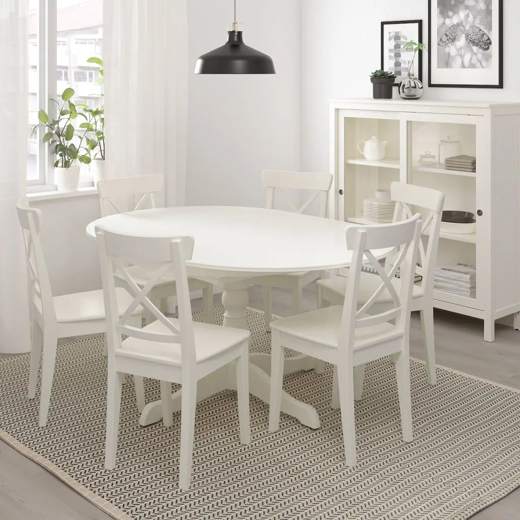 Размер стола легко изменить. Благодаря вкладной доске, хранящейся под столешницей, за столом могут сидеть от 4 до 6 человек.Функция защелкивания; дополнительная столешница плотно задвигается.Стол легко может раздвинуть один человек.Вкладную доску удобно хранить под столешницей.Поверхность, покрытая прозрачным лаком, проста в уходе.Мы все проверили! Поверхность столешницы выдержит воздействие жидкостей и тепла, а также будет устойчива к пятнам, жиру, царапинам и ударам, чтобы долгие годы выдерживать все испытания повседневного использования.На 4-6 человек.Рекомендуется использовать только в помещении.Для обеспечения максимального качества при необходимости подтягивайте шурупы.Дизайнер