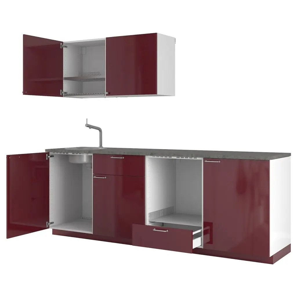 Навесной шкаф с полками, белый Калларп/глянцевый темный красно-коричневый, 60x80 см