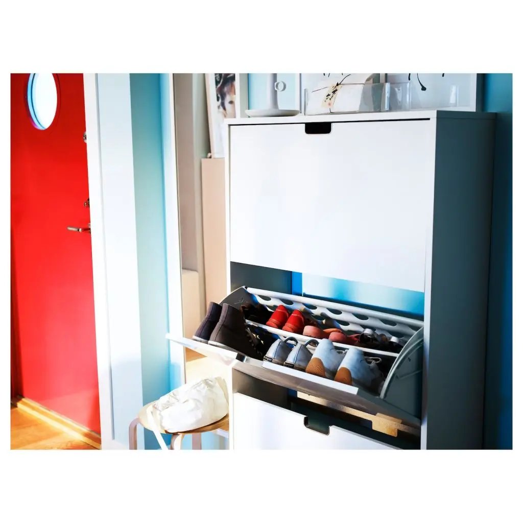 Обеспечивает идеальный порядок в хранении обуви и не занимает много места на полу.Два ряда в каждом отделении обеспечат больше места для хранения обуви.Отсутствие задних ножек позволяет поставить шкаф вплотную к стене над плинтусом.Два ряда в каждом отделении обеспечат больше места для хранения обуви.Благодаря циркуляции воздуха при хранении ваша обувь дольше будет выглядеть как новая.Отсутствие задних ножек позволяет поставить шкаф вплотную к стене над плинтусом.Вмещает мин. 18 пар обуви.Этот шкаф необходимо крепить к стене; для этого на задней панели есть специально подготовленные отверстия.Для разных стен требуются различные крепежные приспособления. Подберите подходящие для ваших стен шурупы, дюбели, саморезы и т. п. (не прилагаются).Дизайнер