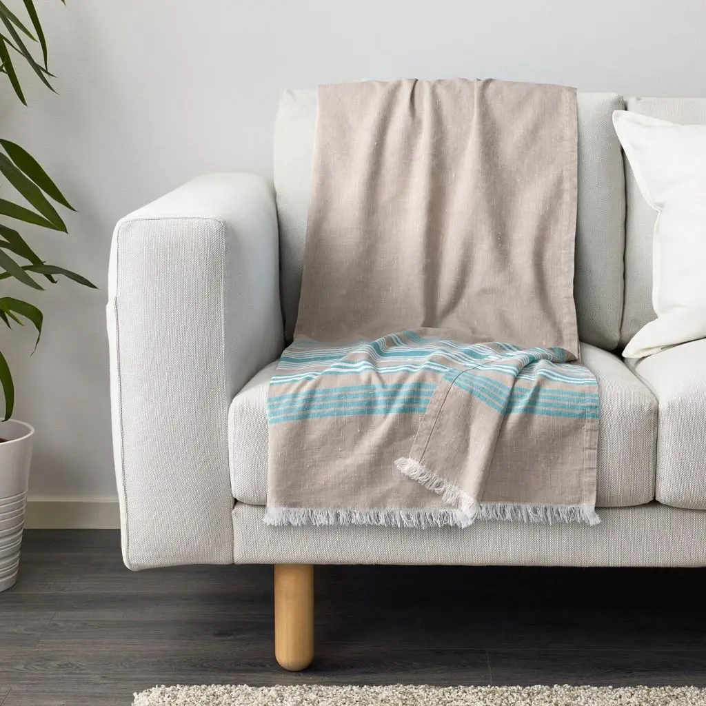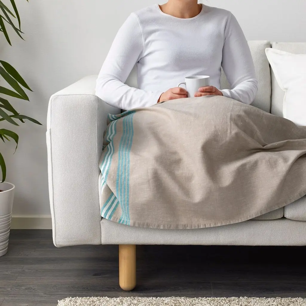В этот большой уютный плед можно укутаться с головы до ног. Мягкая и приятная на ощупь ткань из хлопка и льна не подвергалась отбеливанию и окрашиванию и сохранила естественный цвет этих возобновляемых материалов. Можно также использовать как покрывало.