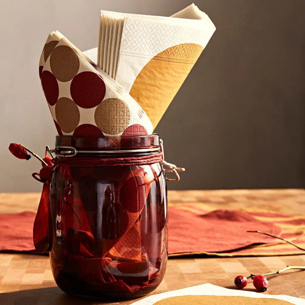 Пусть прекрасные краски осени займут свое место на вашем столе. Салфетки в горошек придают сервировке стола игривый и привлекательный вид. Они прекрасно сочетаются с другими товарами из коллекции КРЁСАМОС.