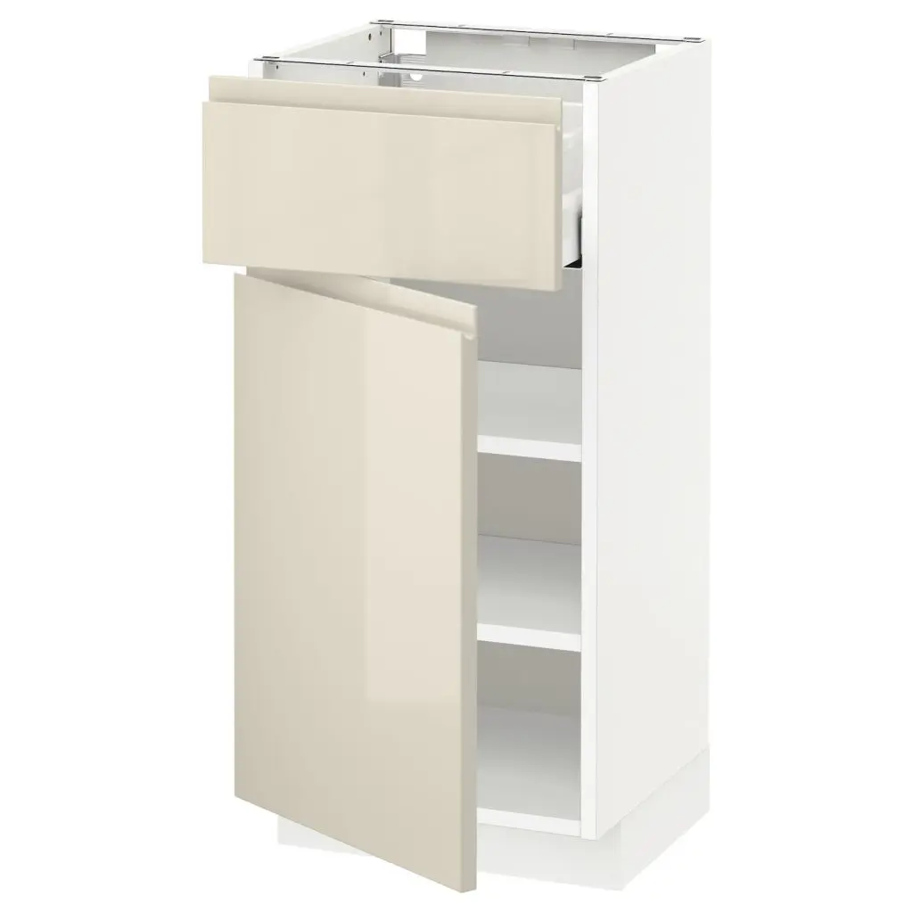 Код кухонного шкафа ME/MA 295Благодаря доводчику ящики закрываются плавно, мягко и бесшумно.Ящик напольного/высокого шкафа выдвигается полностью, обеспечивая удобный доступ к содержимому.Ящик с плавным ходом.Последние несколько сантиметров ящик закрывается автоматически.Каркас имеет устойчивую конструкцию благодаря стенкам из ДСП толщиной 18 мм.Для разных стен требуются различные крепежные приспособления. Подберите подходящие для ваших стен шурупы, дюбели, саморезы и т. п. (не прилагаются).Ножки и цоколи продаются отдельно.Можно дополнить ручкой.Дизайнер